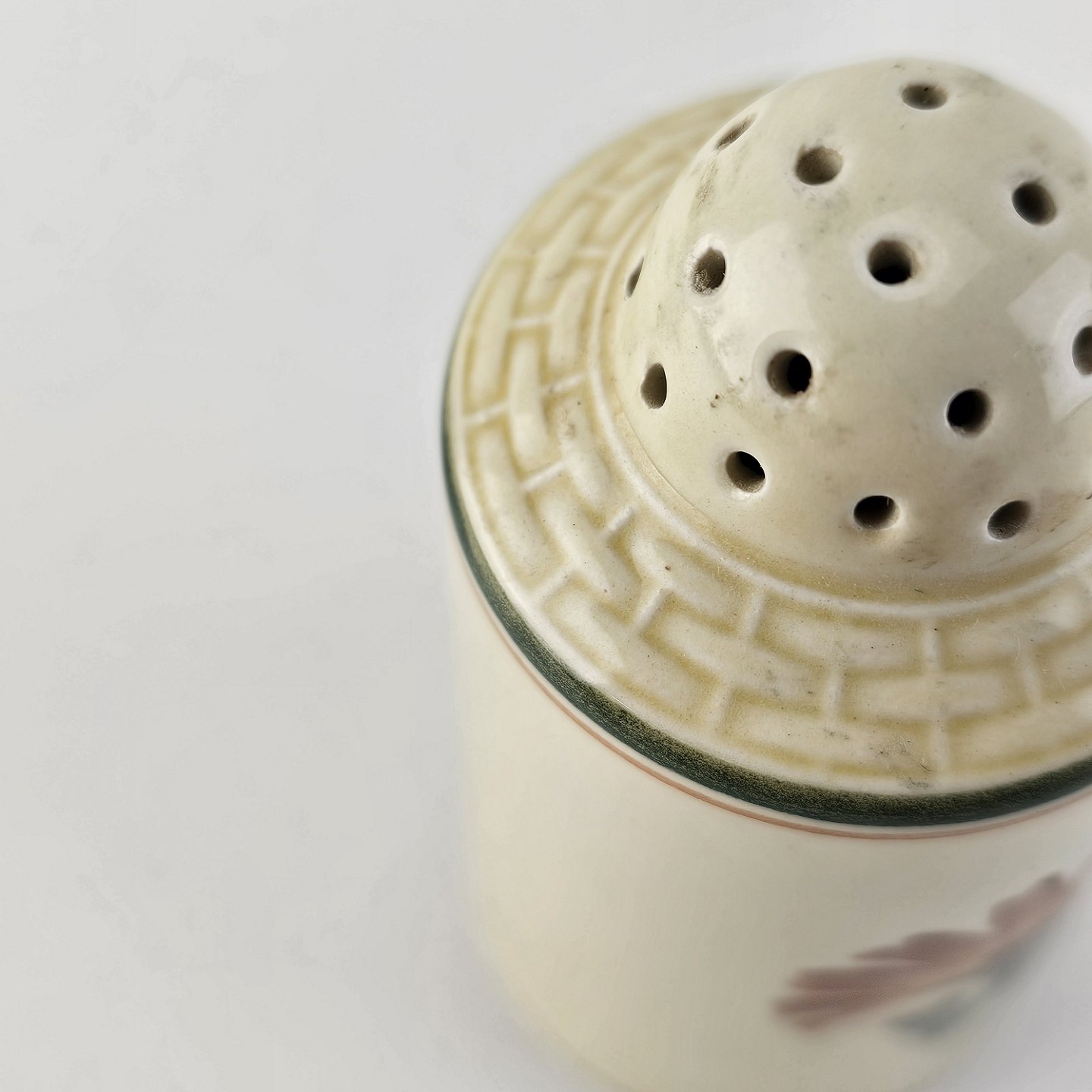 Salt eller peberbøsse i fajance fra stellet Morgenfrue