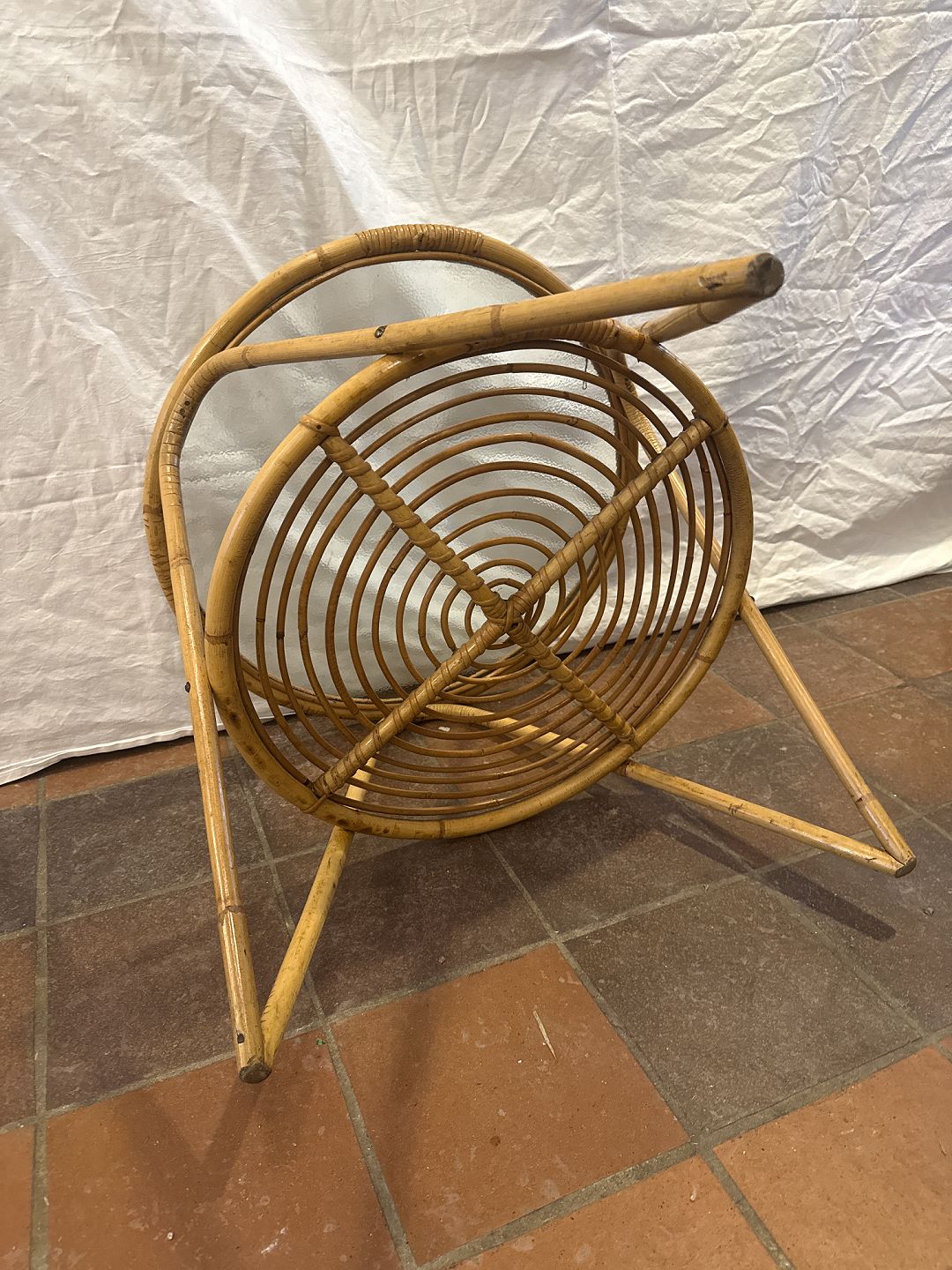 Dansk møbelproducent rundt sofabord i bambus m. plade i råglas.