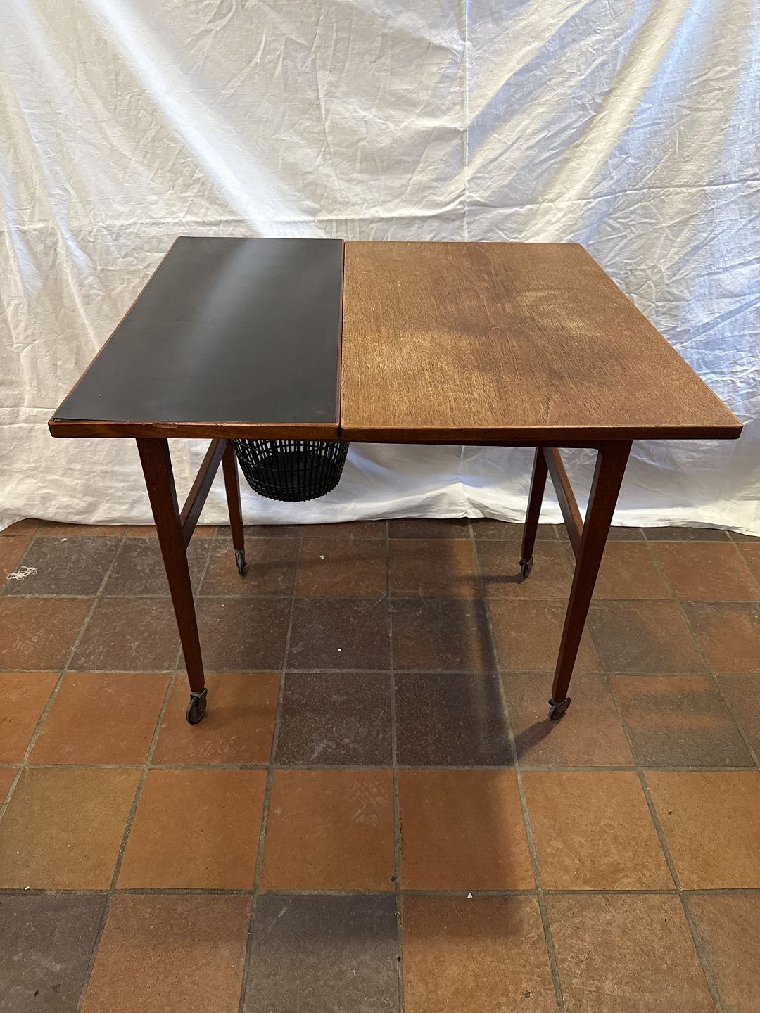 Dansk møbelproducent sybord i fineret teak m. plade i formica.