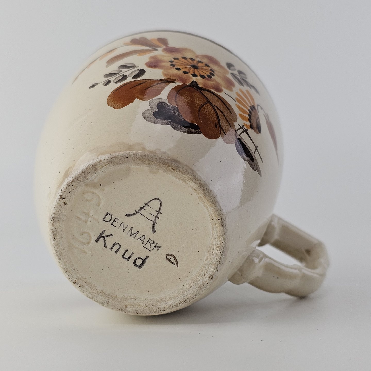 Knud er cremefarvet fajance dekoreret med flettet kant og brune og orange blomster. Stellet blev produceret i år 1934-1963.