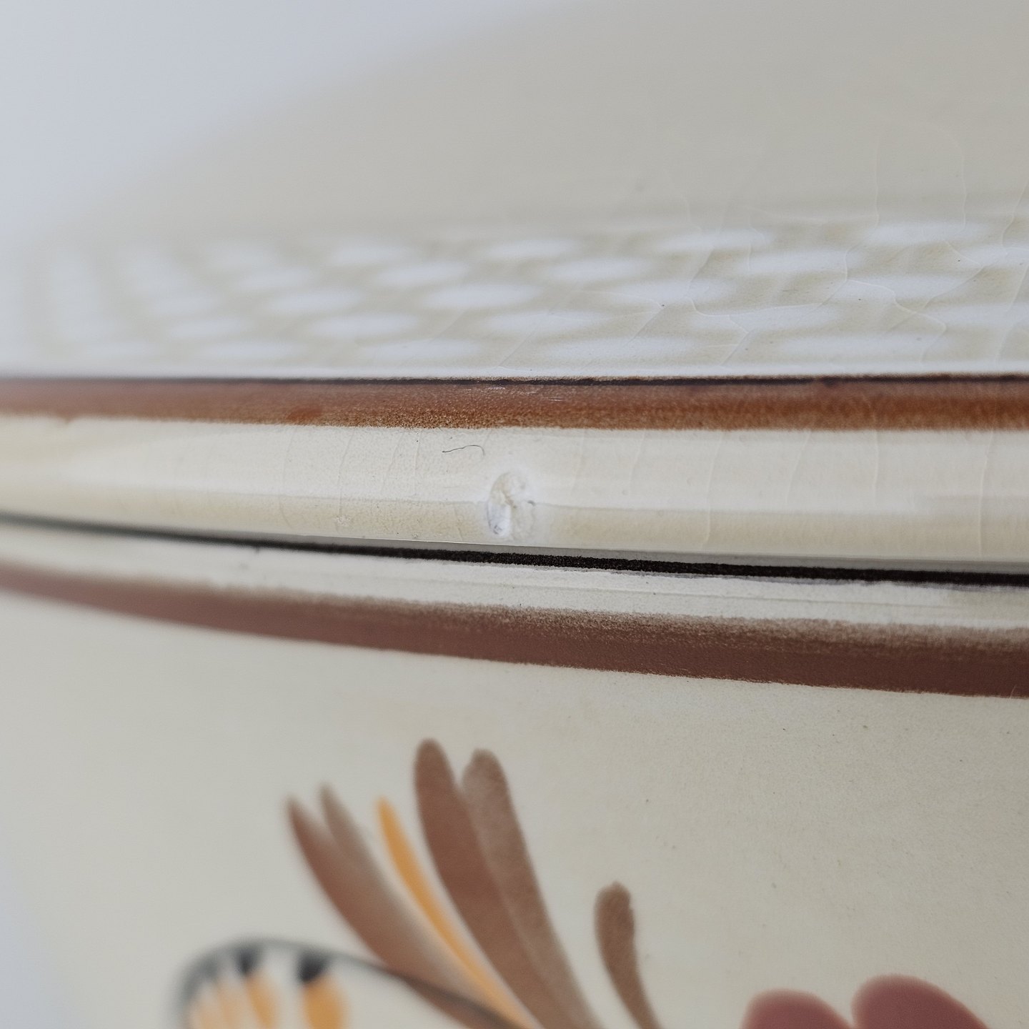 Knud er cremefarvet fajance dekoreret med flettet kant og brune og orange blomster. Stellet blev produceret i år 1934-1963.