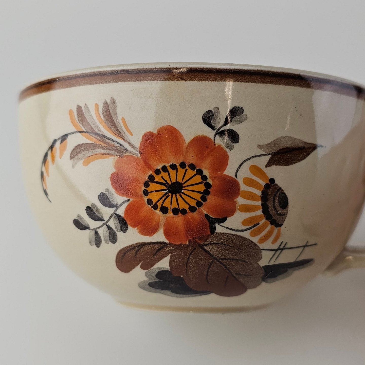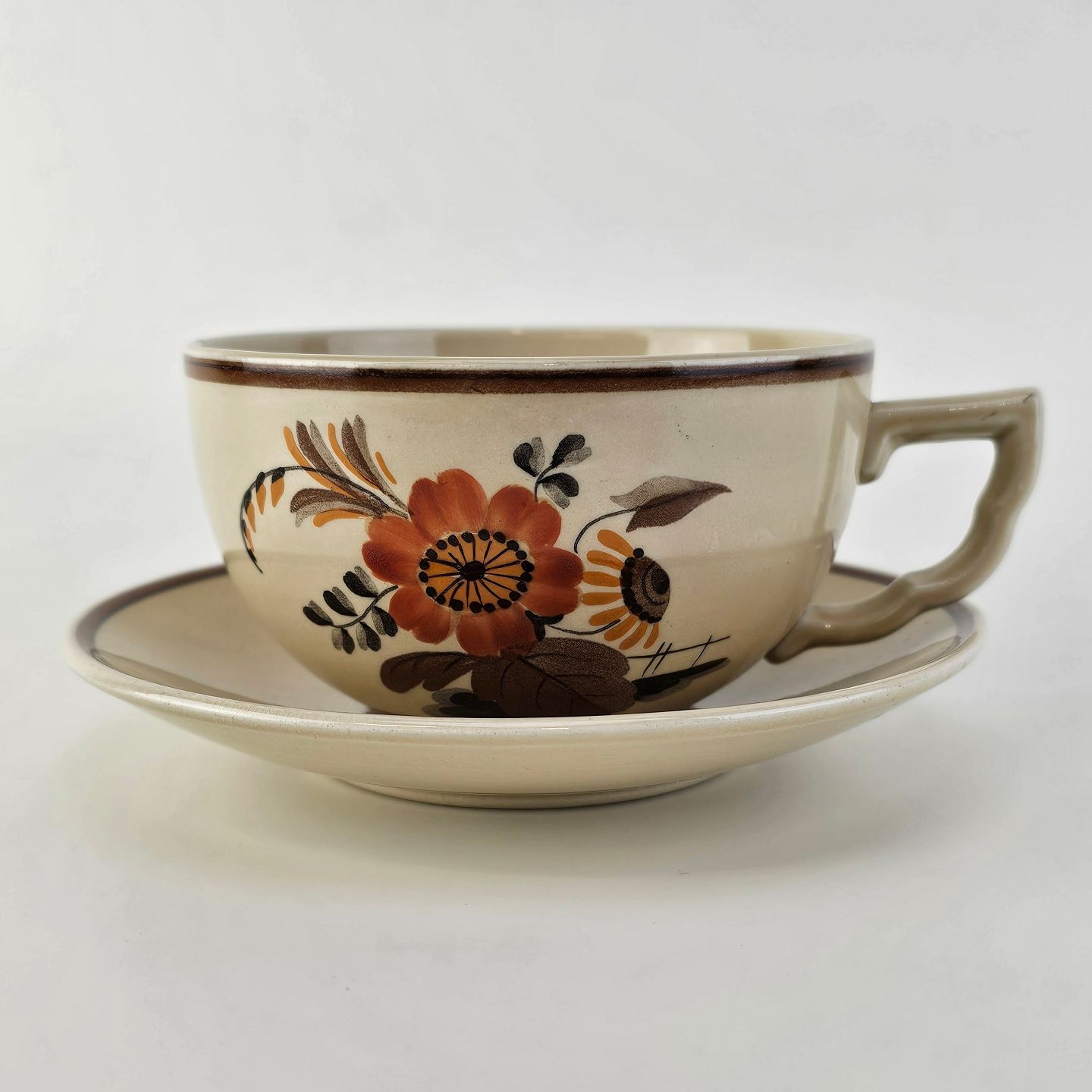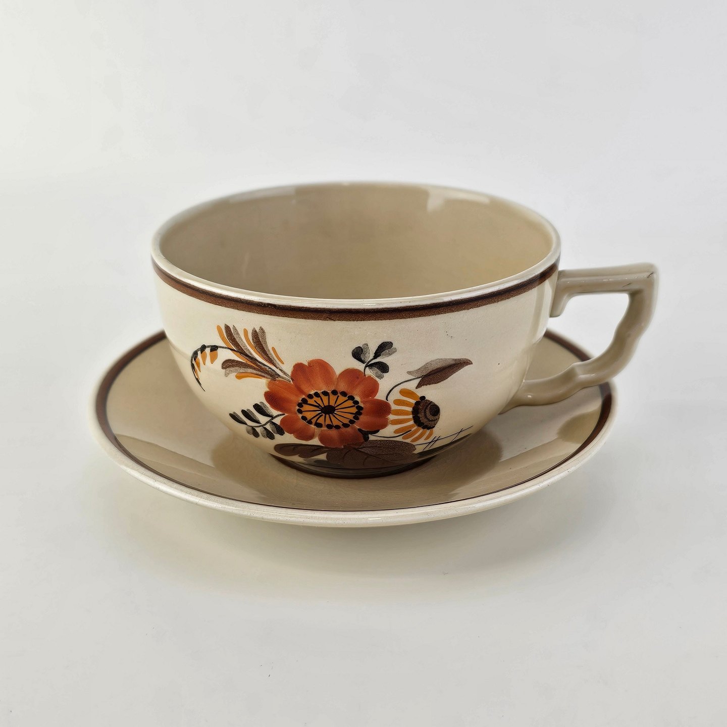 Kop med underkop i fajance fra stellet Knud