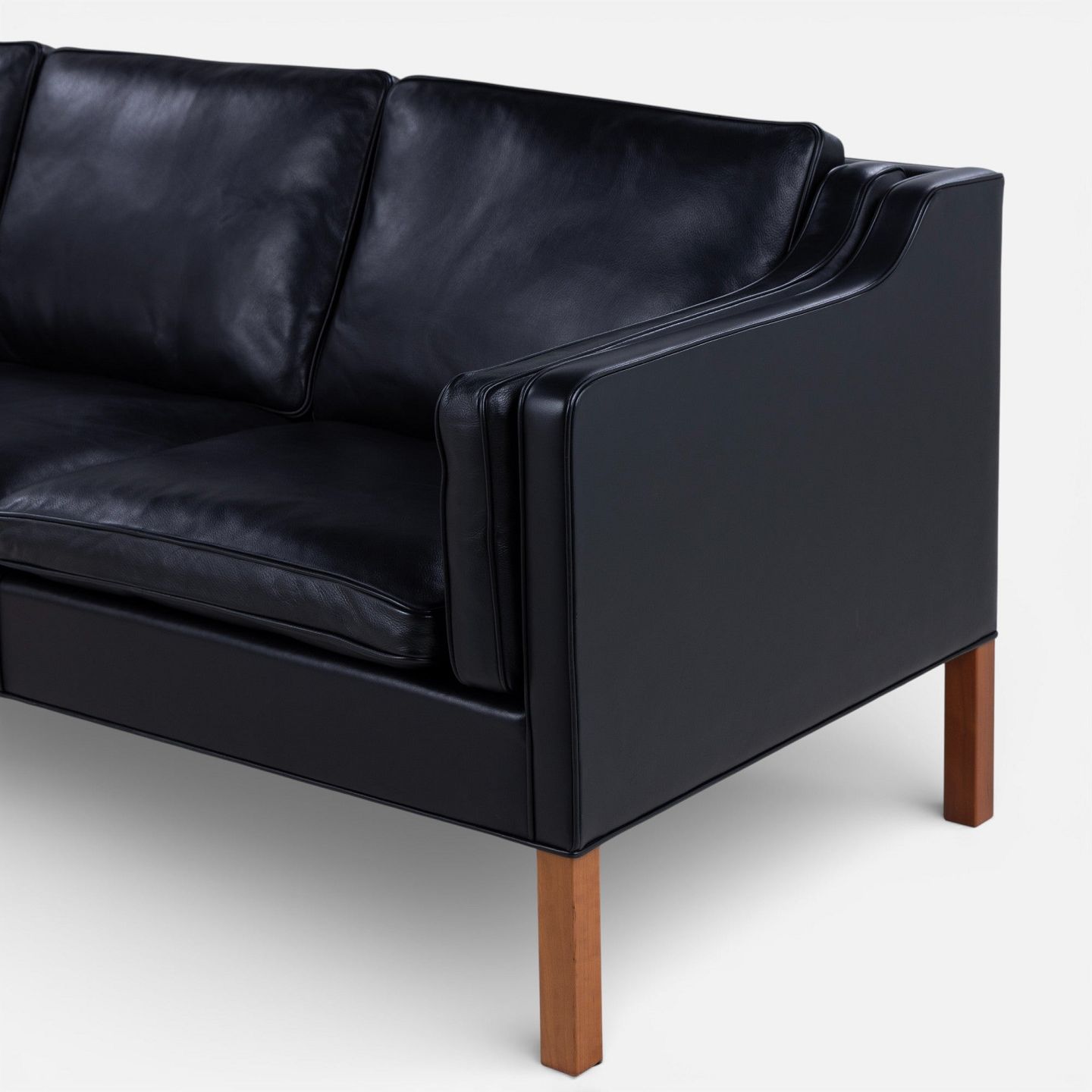 BM 2213 - 3 pers. sofa i sort semi-anilinlæder. Mærket fra producent.