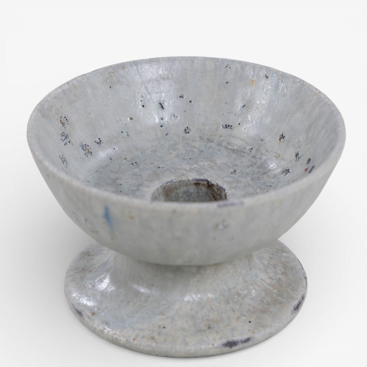 AB 406 - Lav lysestage i stentøj med lys glasur. Signeret.
