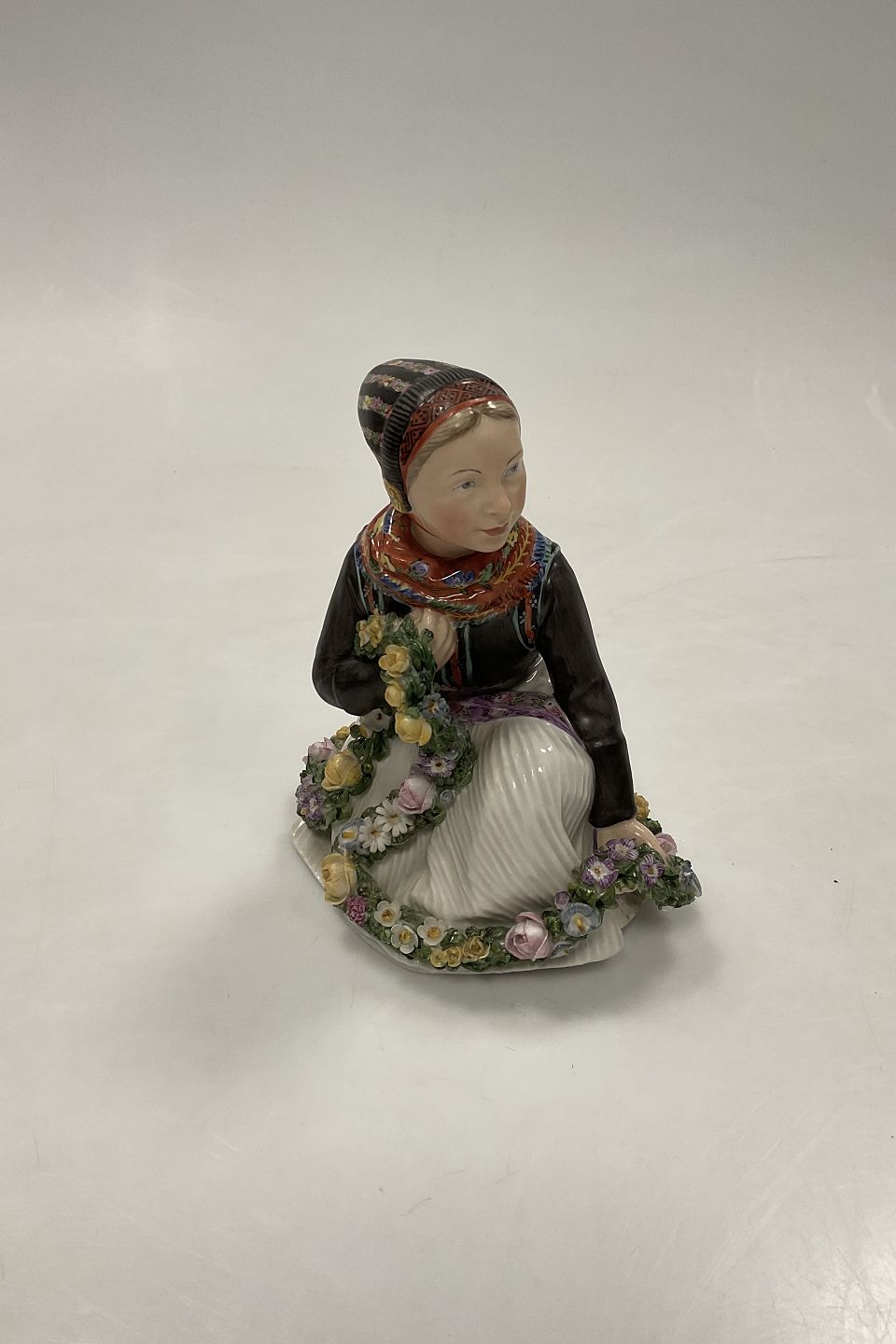 Royal Copenhagen Overglasur figur af Amager Blomster Pige No. 12412.