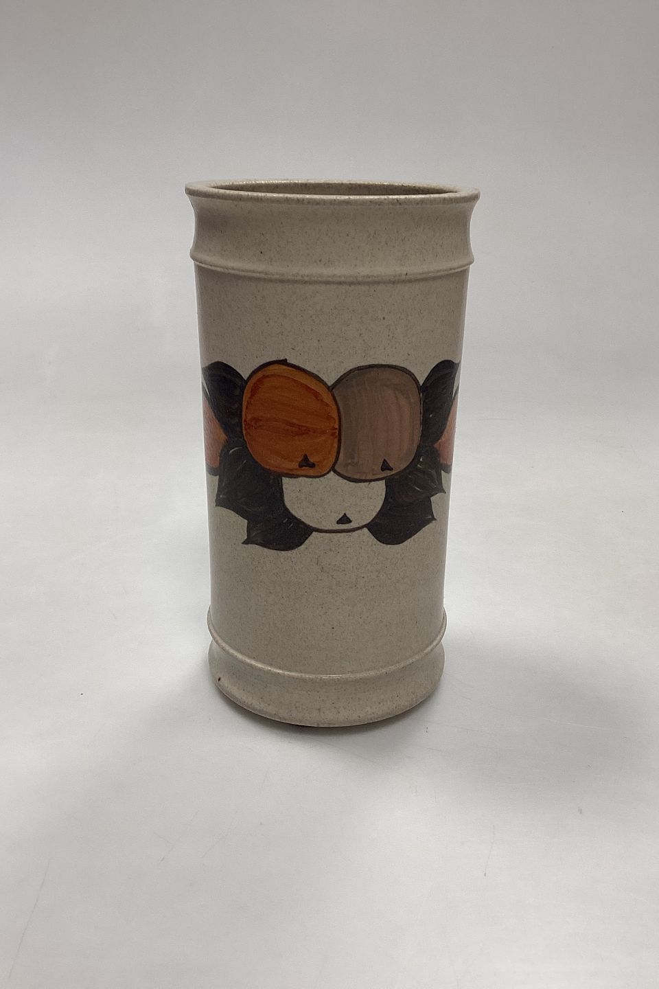 Kähler Keramik Vase med Æbler No. 811-18. Motiv i orange og brun på baggrund af råhvidt stentøj.