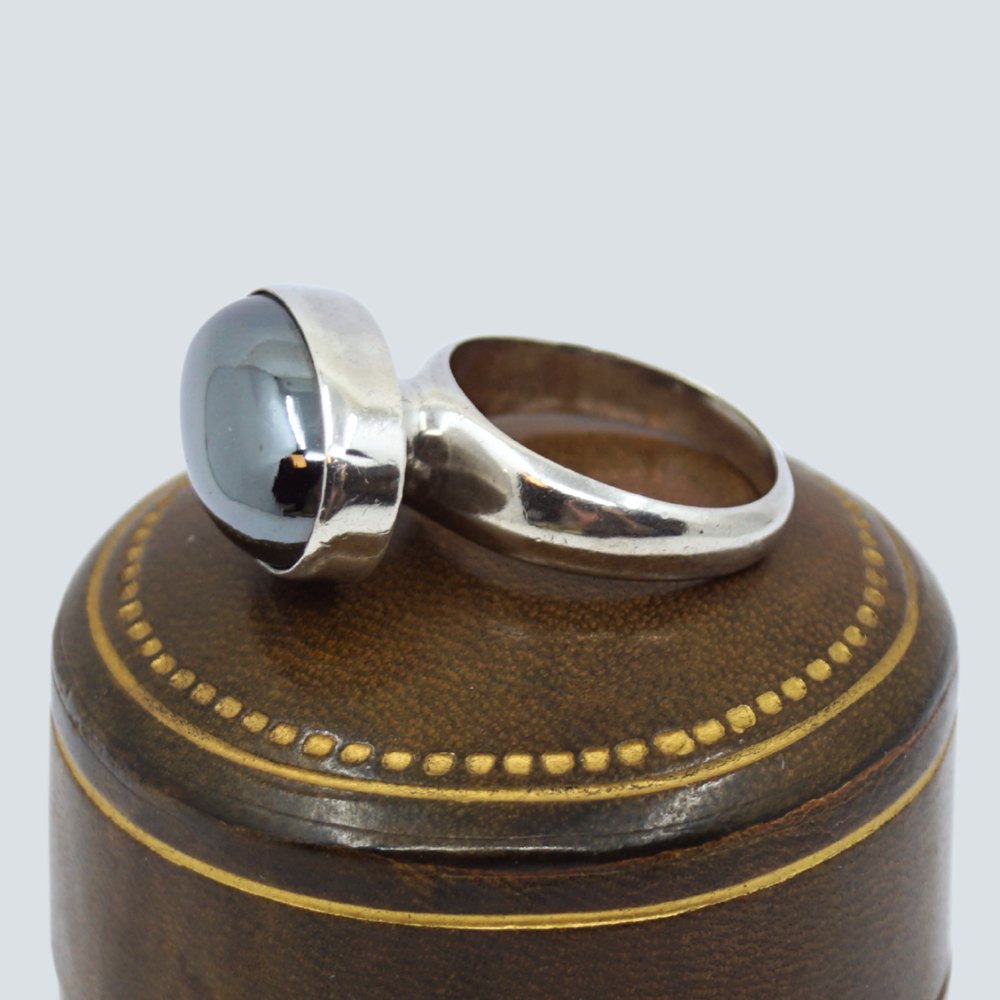 Nanna Ditzel for Georg Jensen; Ring i sterling sølv #123B, prydet med hæmatit. Ring str. 51.