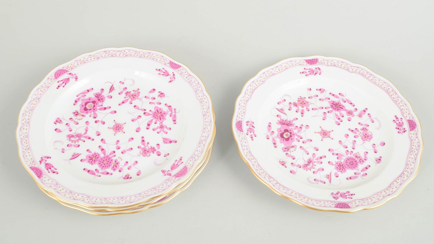 Meissen, "Pink Indian flower" sæt på fire frokosttallerkener.