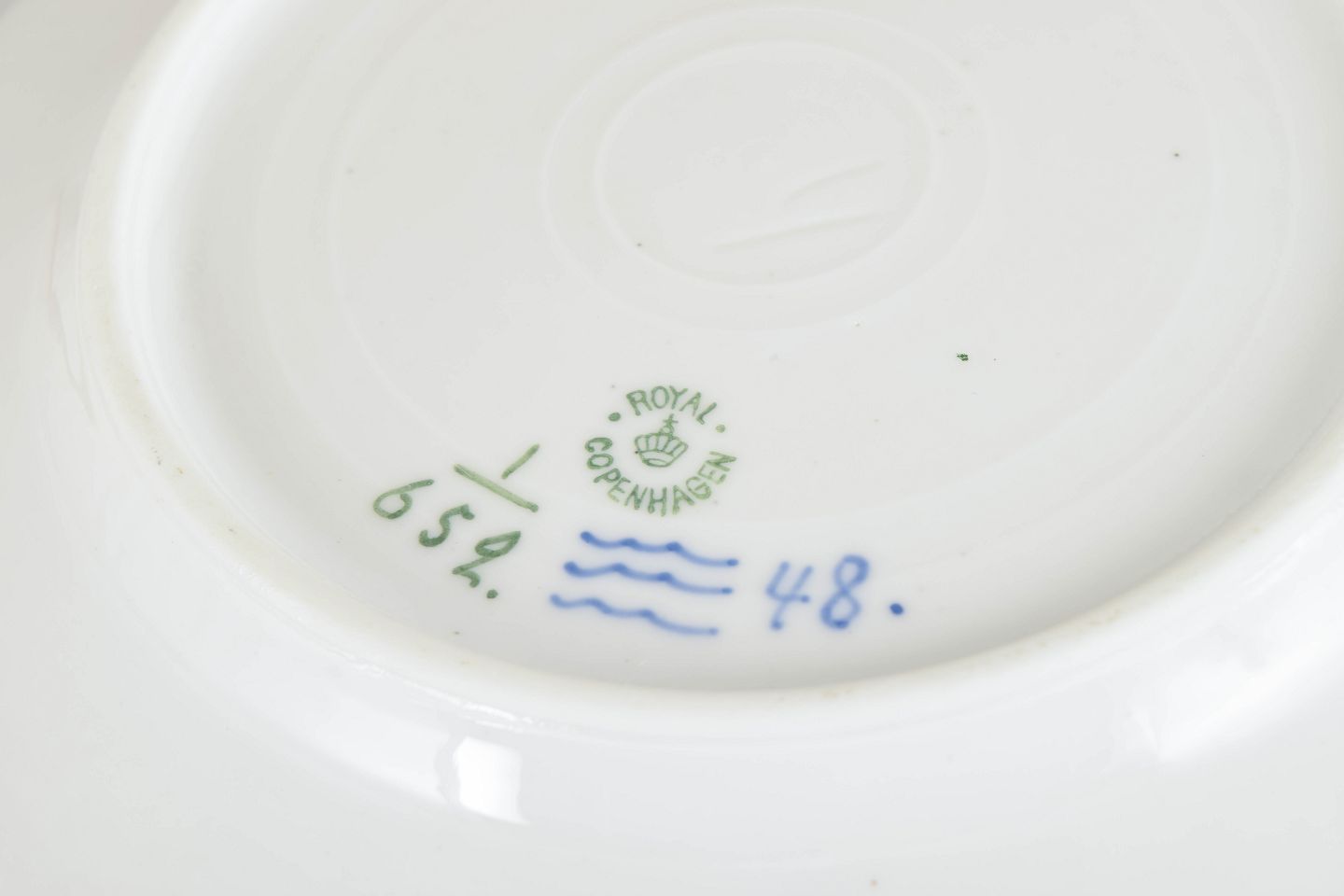 Royal Copenhagen blev grundlagt i 1775 i København under kongelig bevilling. Fabrikken er internationalt anerkendt for sit håndmalede porcelæn og sit høje kunstneriske niveau. Musselmalet Halvblonde er en videreudvikling af det klassiske Musselmalet stel, hvor de riflede flader kombineres med en gennembrudt blondekant og detaljeret håndmalet dekoration.