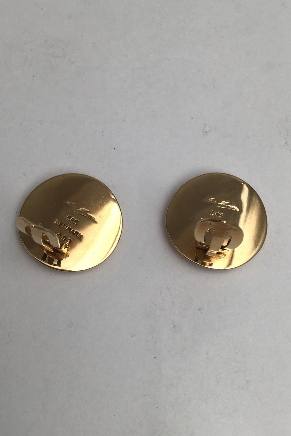 Hans Hansen 14K Gold Earrings (Clips) No. 403 Measures Diam 2 cm (0.78 inch) Combined Weight 11 gr (0.38 oz)