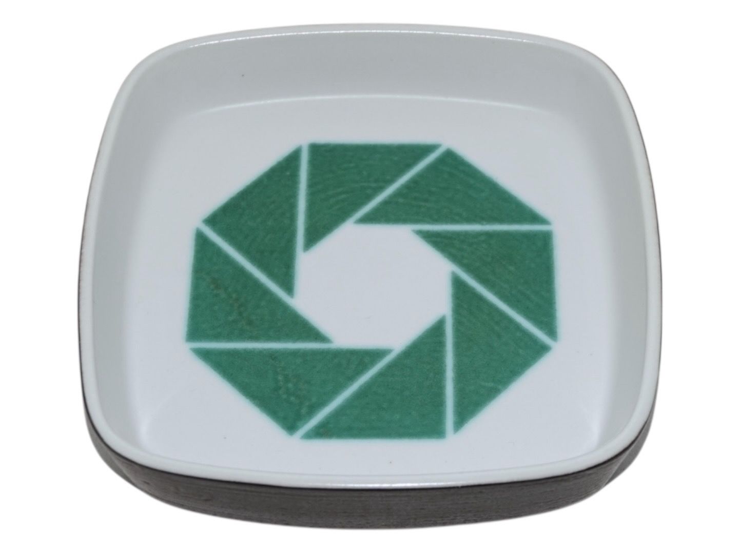 Royal Copenhagen Baca firkantet skål med grønt logo fra Jyske Bank.