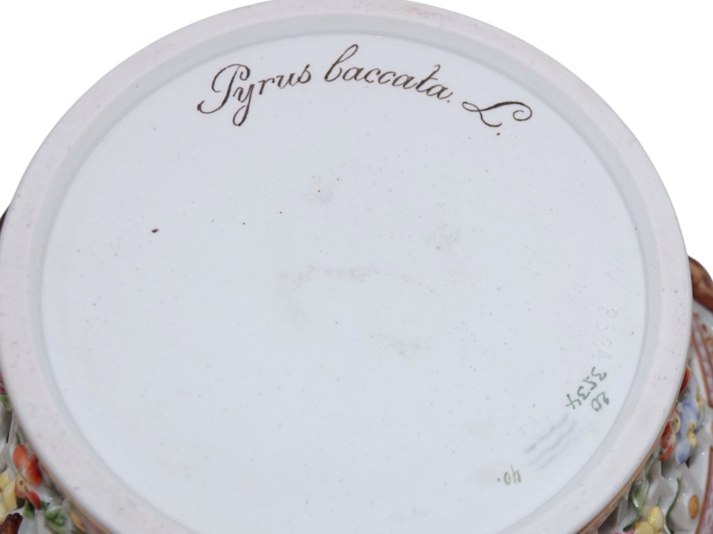 Dekoreret med "Pyrus baccata L." som er bæræble på dansk.