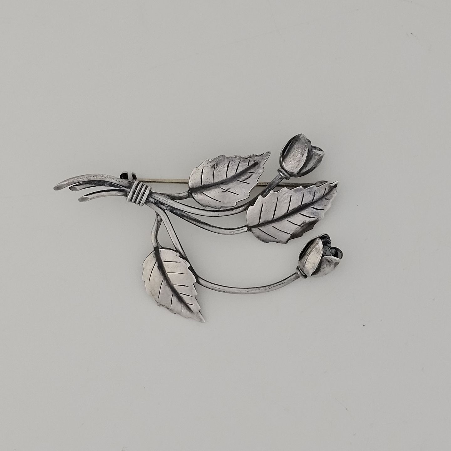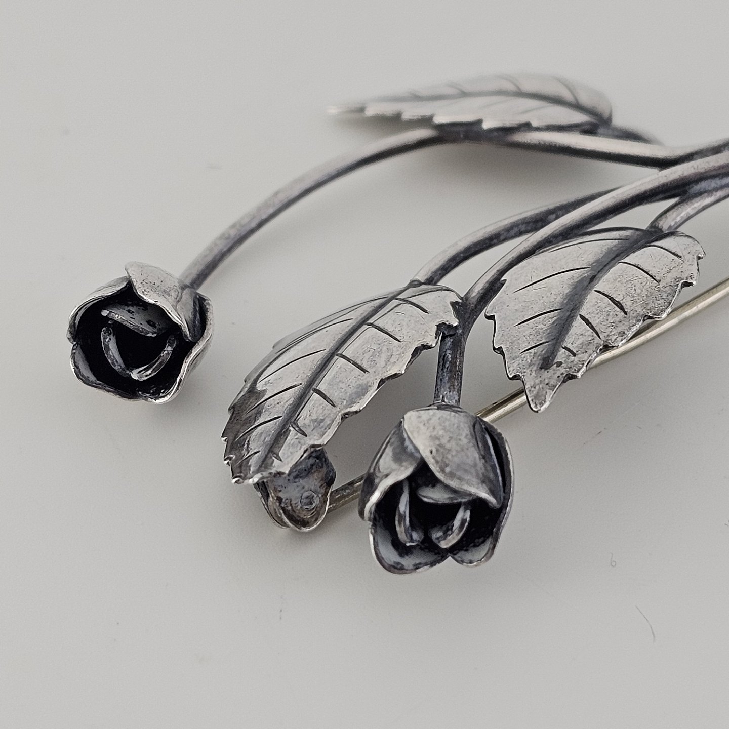 Broche i sterling sølv med motiv af en lille blomsterbuket