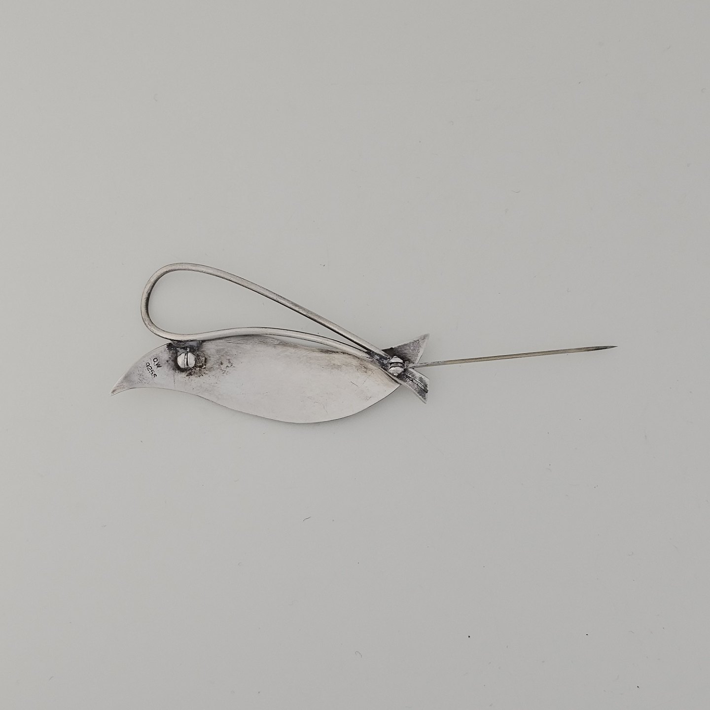 Broche i sterling sølv med motiv af et blad