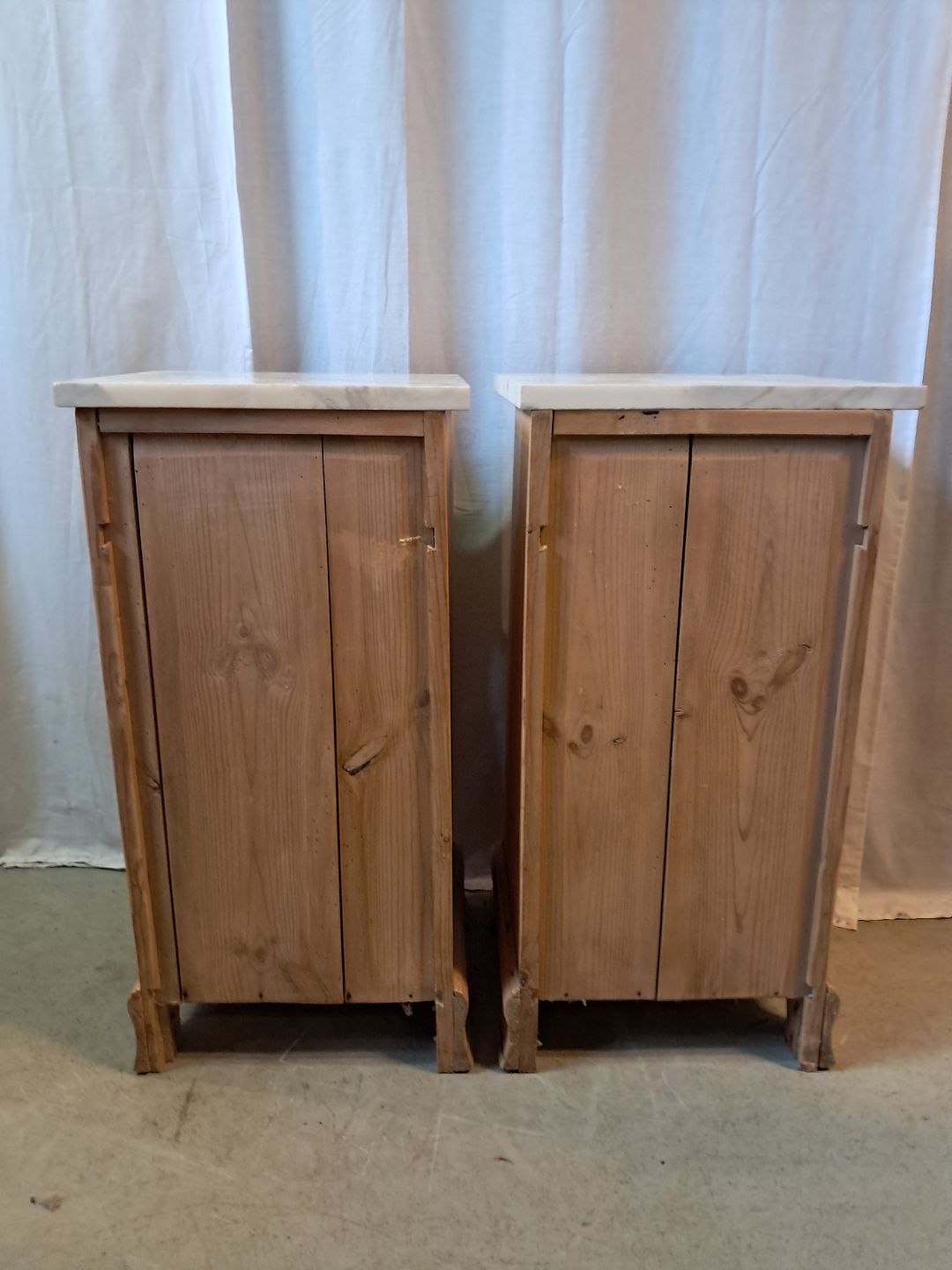 2 Natskabe i massivt fyrretræ med marmorplade, fra 1910erne.
