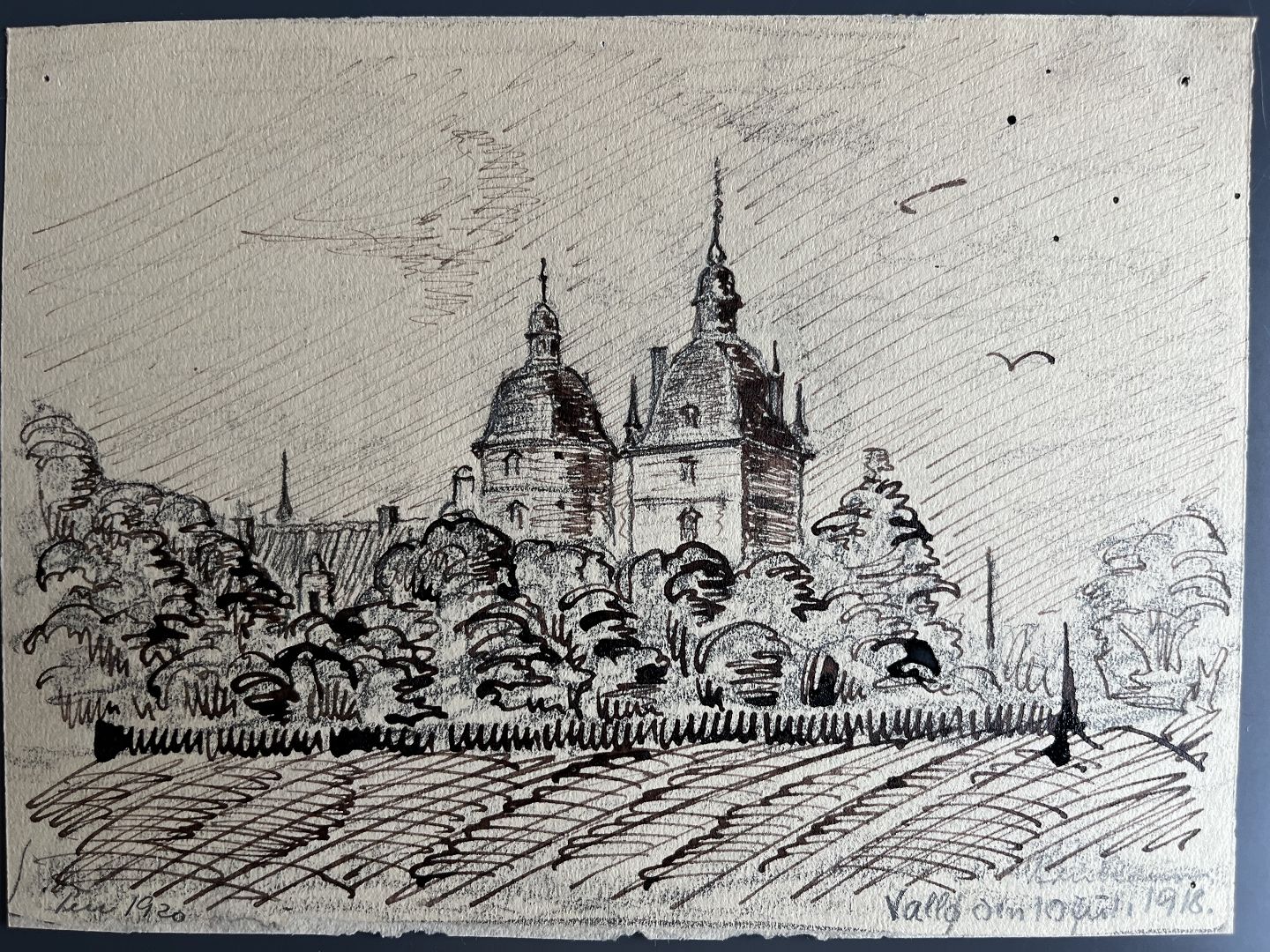 Tegning af Peder Pedersen - Vallø Slot 1918/20.