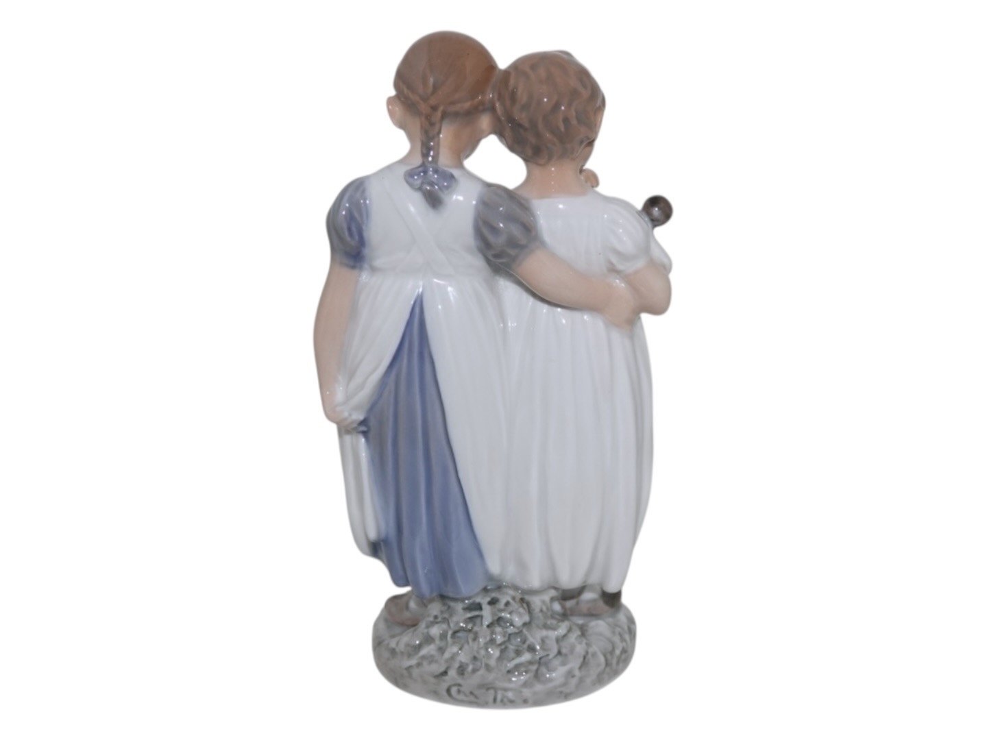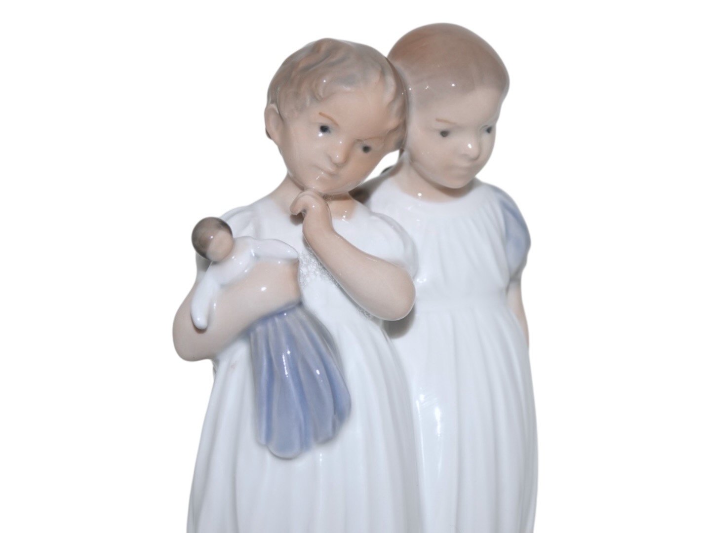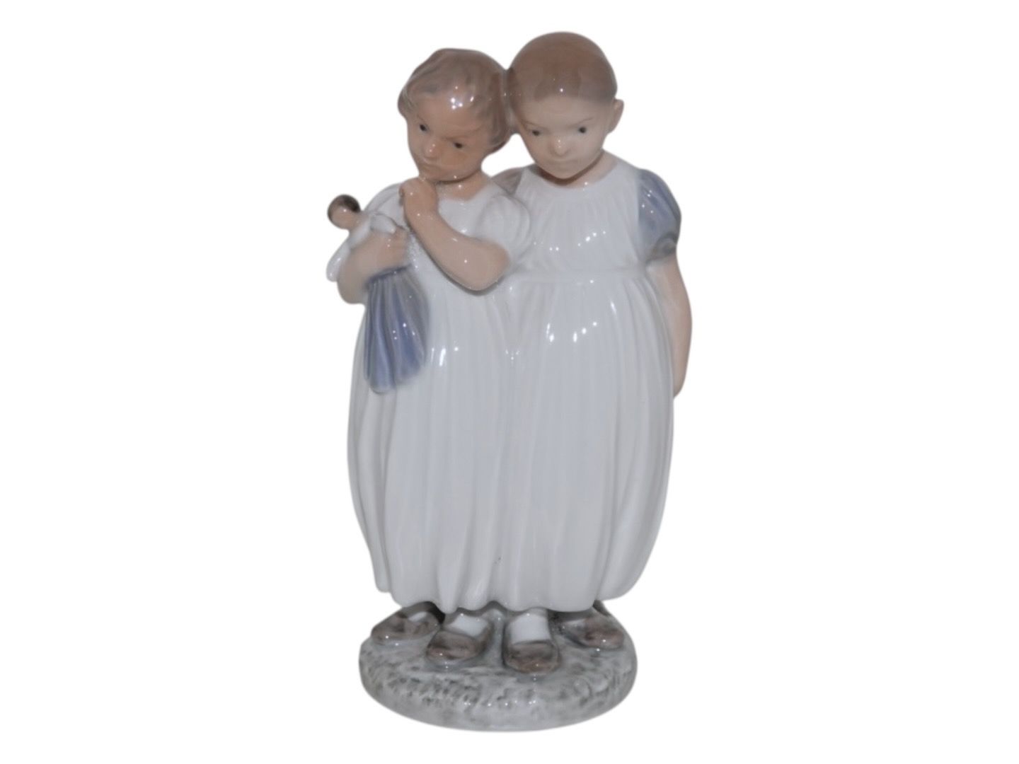 Royal Copenhagen figur, to piger der står med en dukke.
