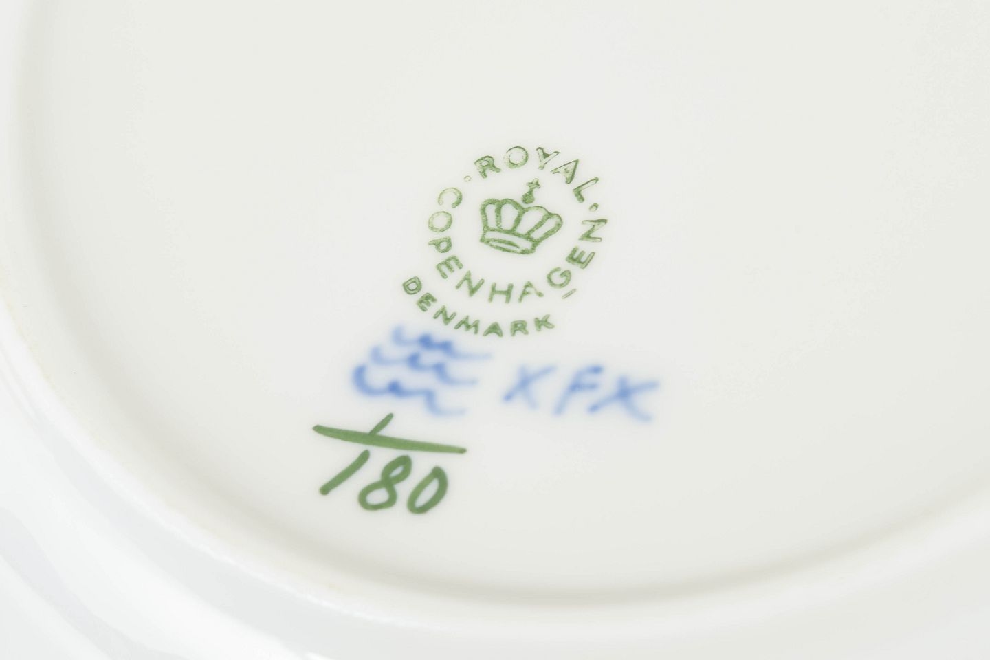 Royal Copenhagen blev grundlagt i 1775 i København under kongelig bevilling. Fabrikken er internationalt anerkendt for sit håndmalede porcelæn og sit høje kunstneriske niveau. Musselmalet Riflet er fabrikkens ældste stel, introduceret i 1775 og stadig produceret i dag, kendt for sin klassiske koboltblå dekoration og riflede form.