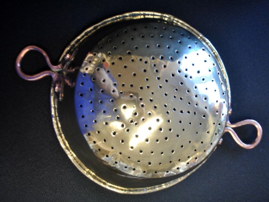 Dørslag i messing, 19. årh. Danmark. Med ører af kobber. Dia: 24,5 cm.