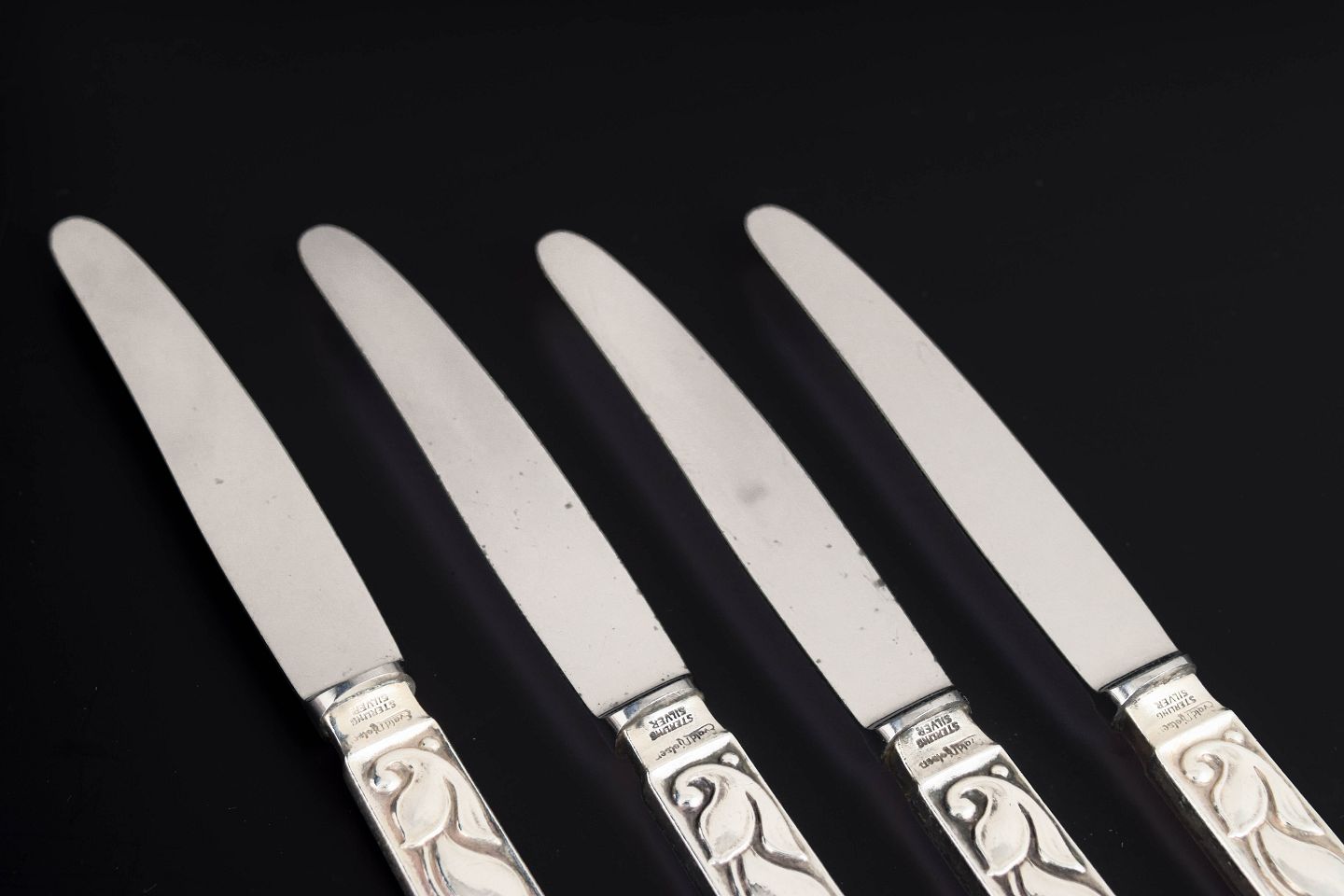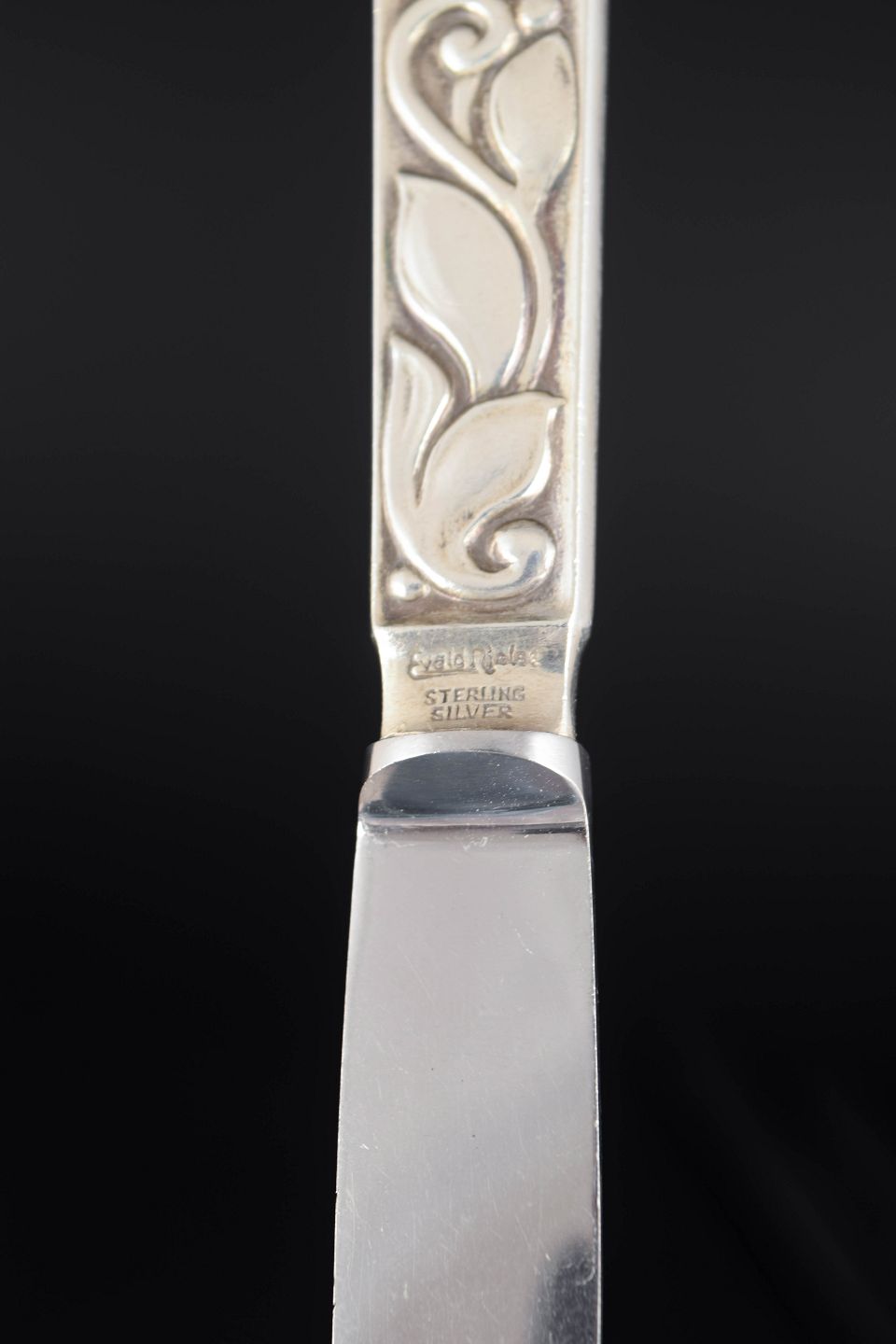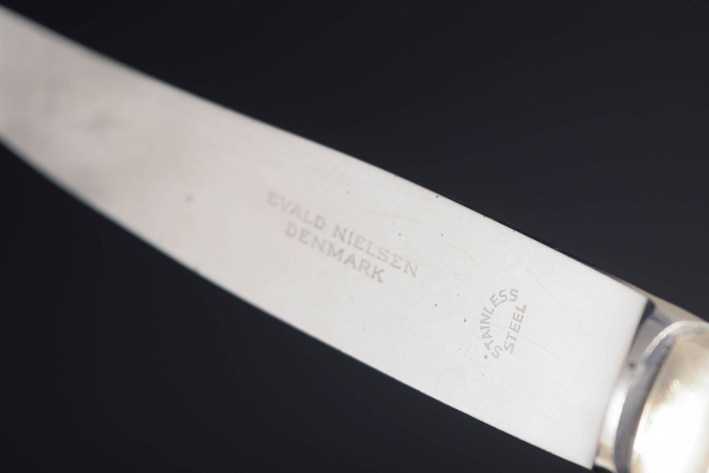 Elegante frugtknive i sterlingsølv og rustfrit stål med klassisk, let afrundet skaftform og glat klinge. Fremstillet hos Evald Nielsen.