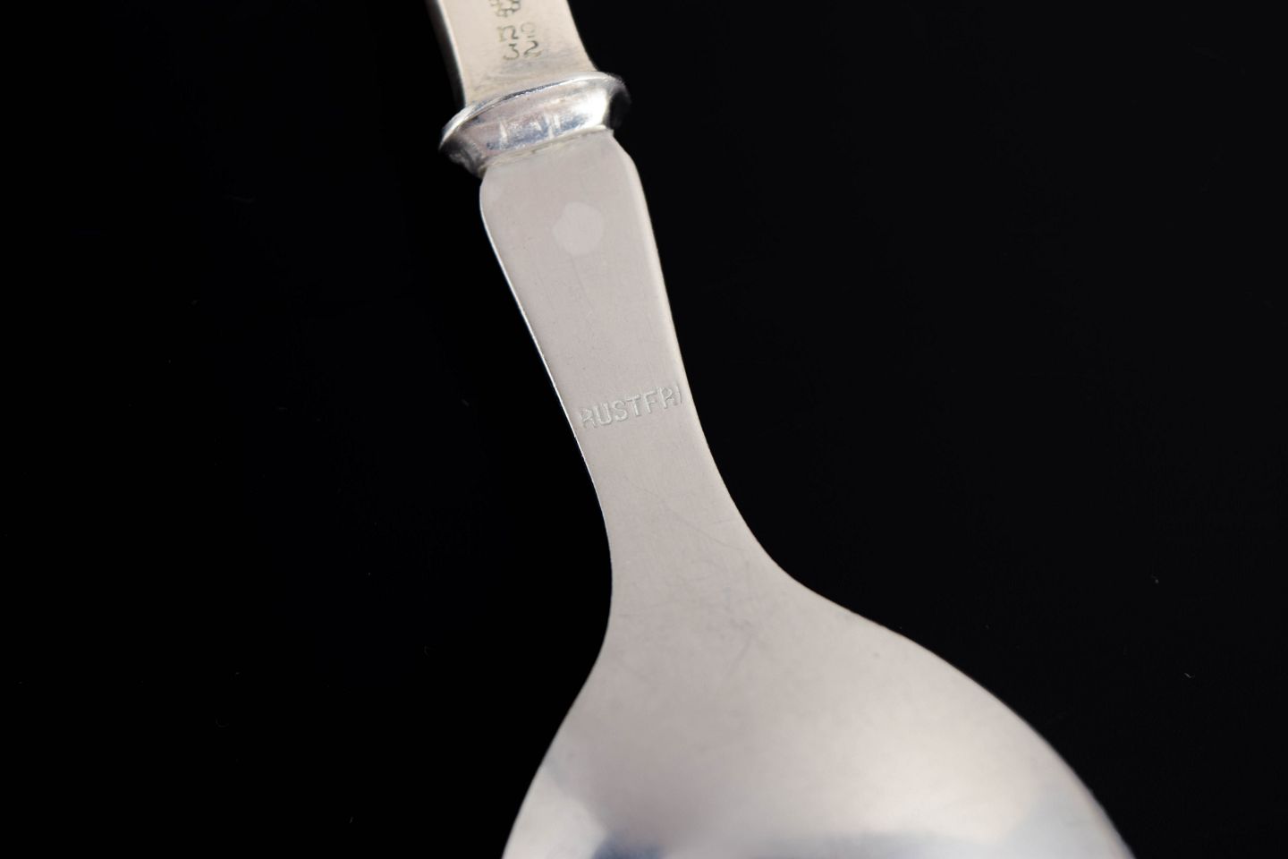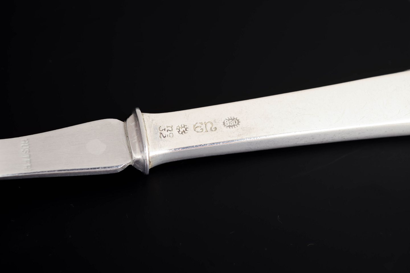 Evald Nielsen (1879–1958) was a Danish silversmith and a central figure in Danish silver design during the first half of the twentieth century. He founded his workshop in Copenhagen in 1905 and became known for elegant and functional cutlery patterns as well as silver hollowware. His designs evolved from Art Nouveau influences toward a more restrained classical style during the interwar period. Evald Nielsen’s works are today highly sought after by collectors of Danish silver.