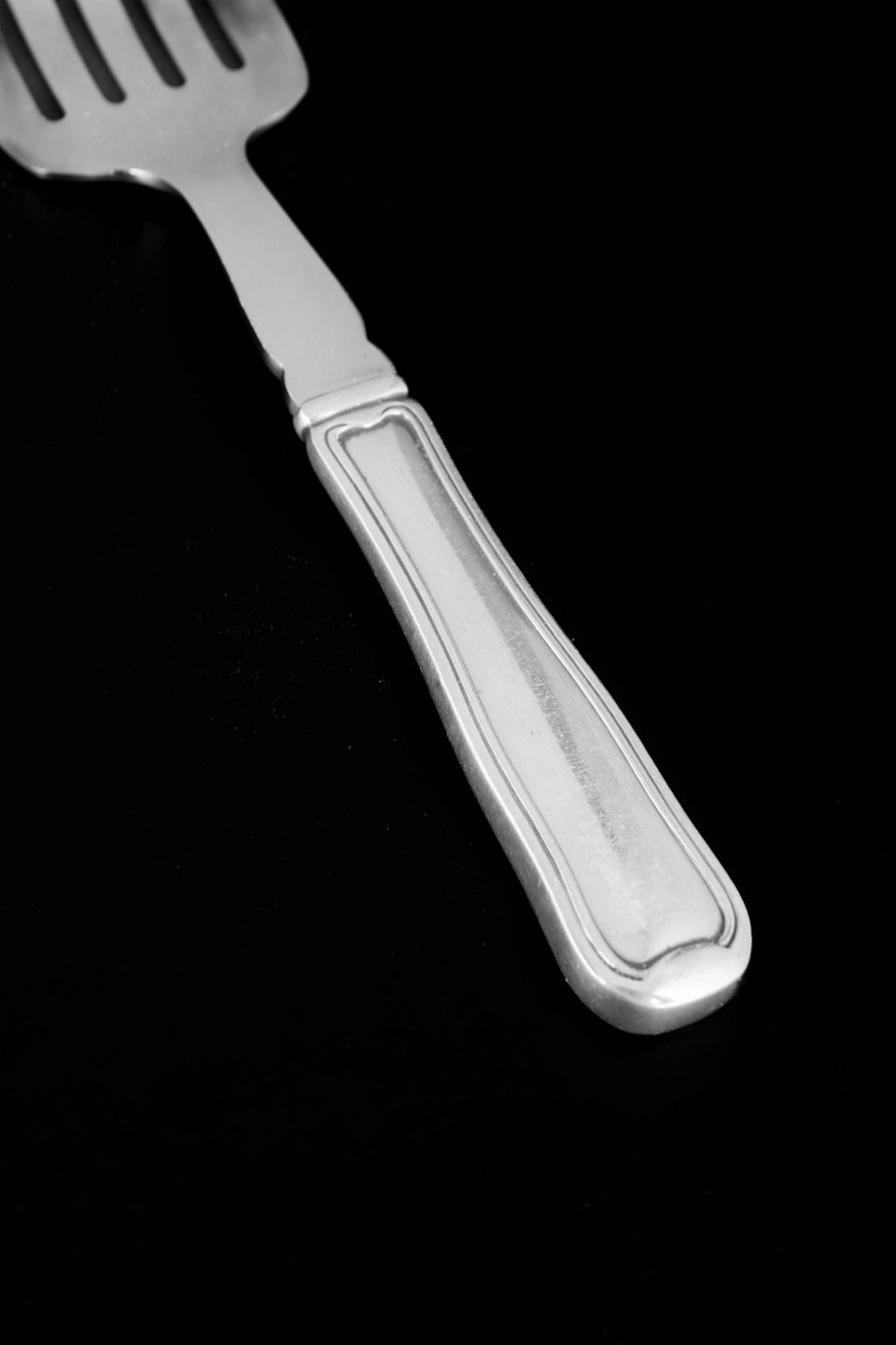 Sardine fork in stainless steel and sterling silver with handle in the Old Danish pattern. The piece features a wide perforated stainless steel blade and an elegant silver handle with the characteristic double reeded border that defines this classic Georg Jensen design.