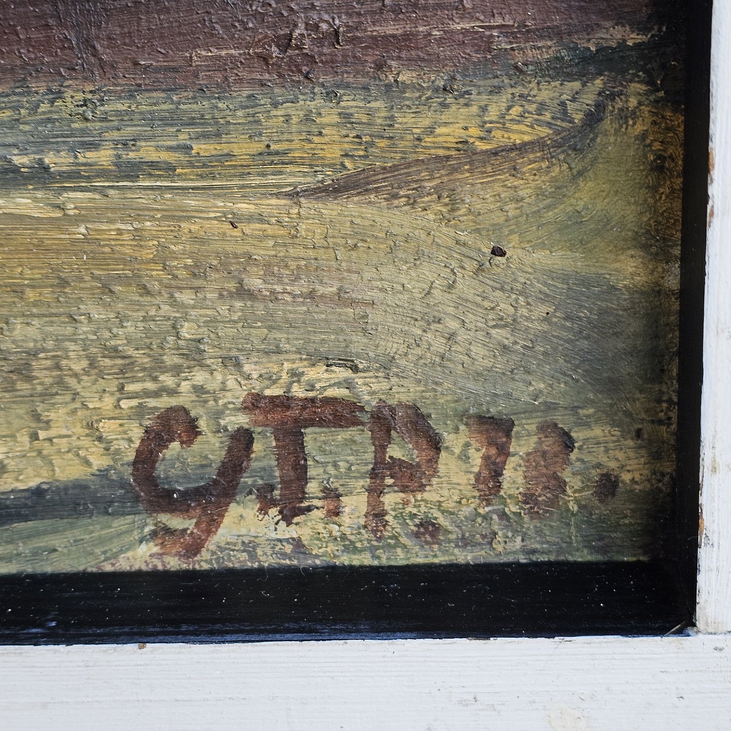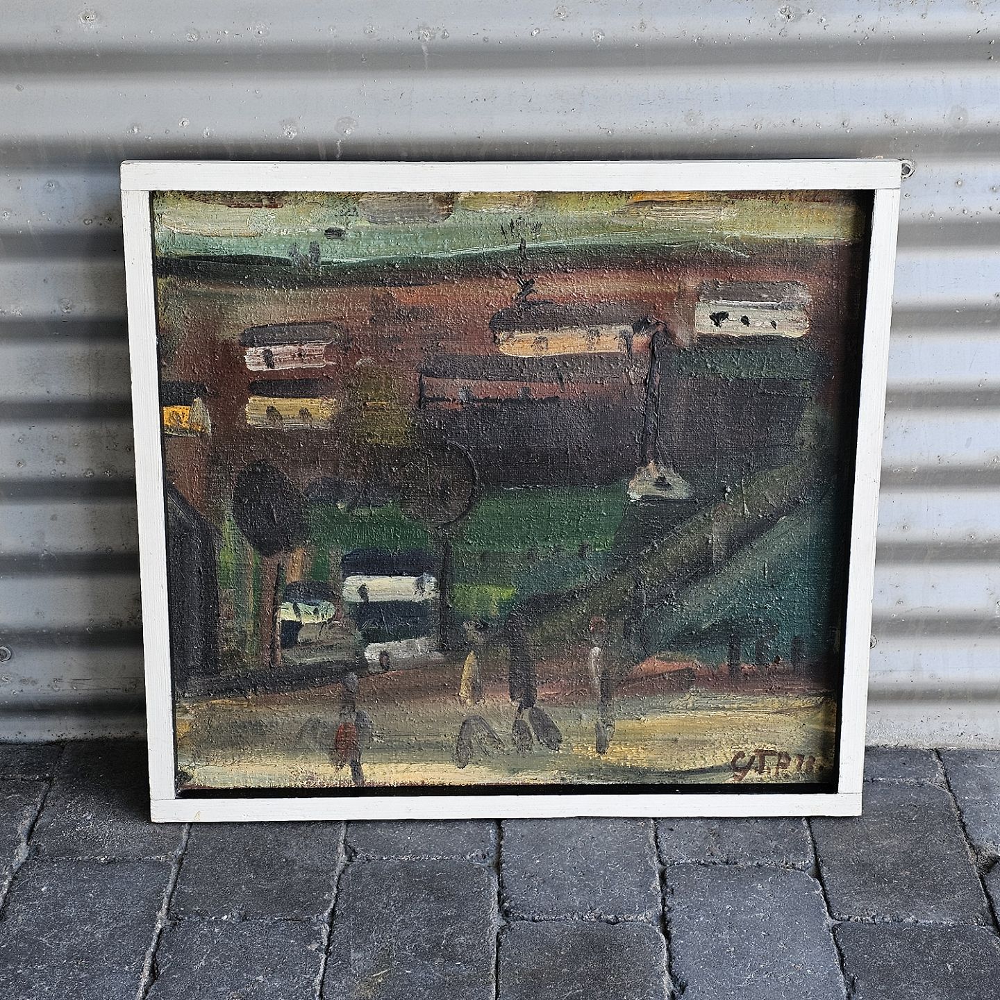Oliemaleri på lærred med hvid ramme
