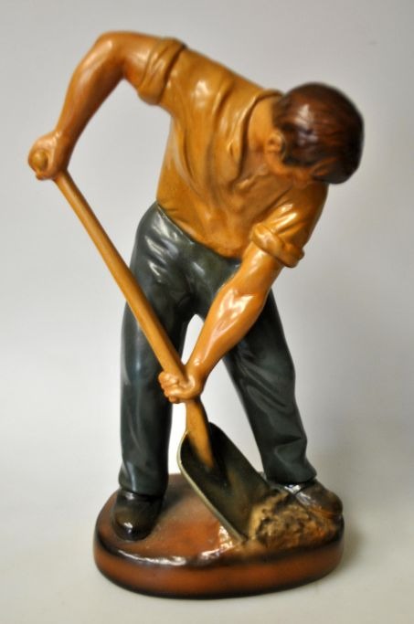 Carlsen, Paul Hauch (1922 - 2006) Danmark: En graver. Bemalet gips. H.: 27,5 cm. Stemplet.