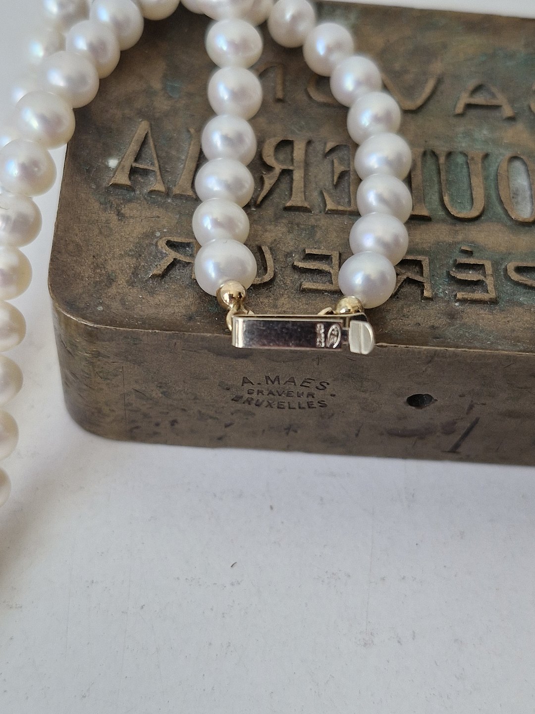 Toradet kulturperle armbånd med lås i 18 kt guld