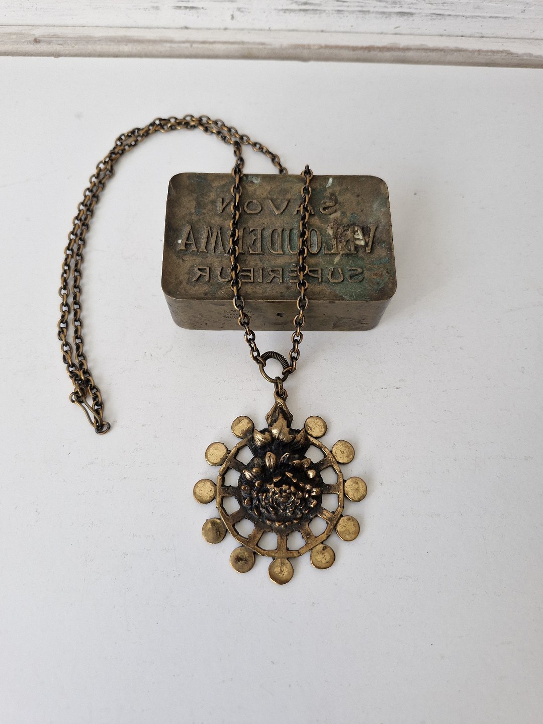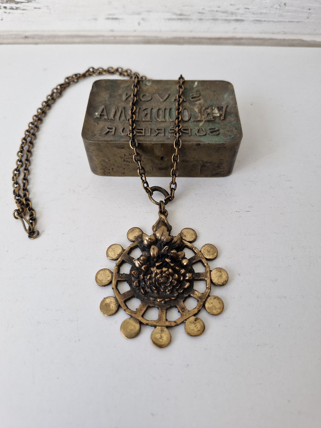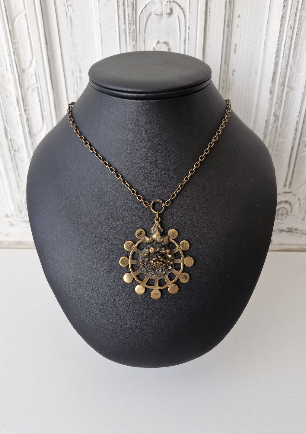 Vintage bronze halssmykke, vedhænget er udført som krysantemum