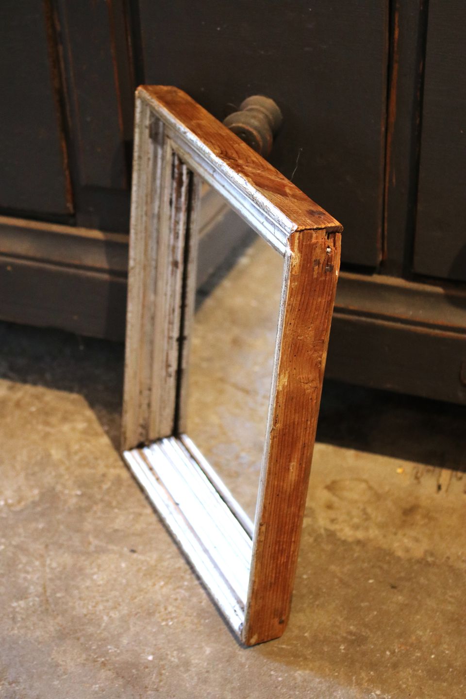 Antik , 1800 tals bred sølvramme med gammelt spejlglas.