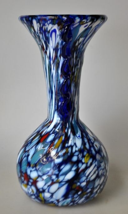 Murano Glasvase, 20. årh. Italien. Flerfarvet glas. Med to hanke. H: 19 cm. Med original etiket fra Murano.