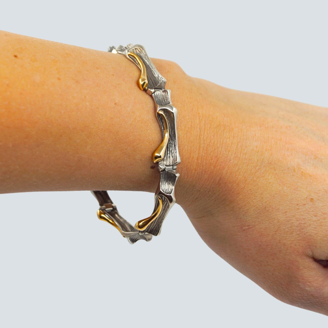 Ole Lynggaard; Leddelt armbånd i 14 kt. hvidguld og guld. Kasselås med sikkerhedslås.