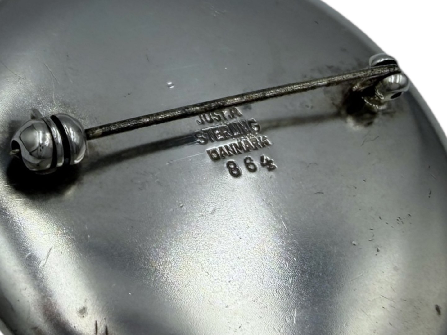 Just Andersen sterlingsølv moderne broche med grøn malakit sten,