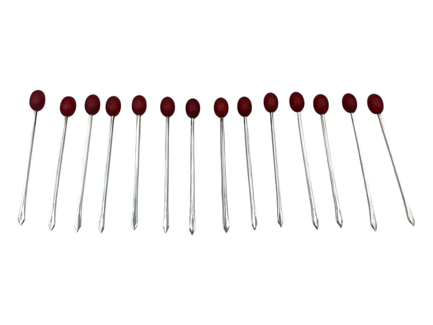 Sæt på 15 cocktailpinde / olivenpinde i sterling sølv med rød bakelit/plastic.