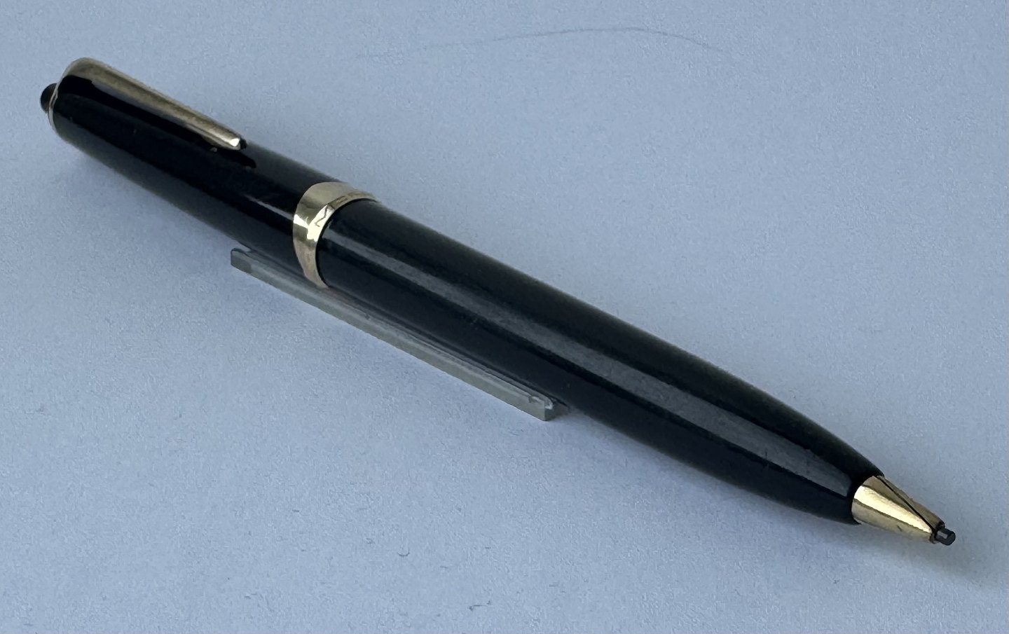 Elegant sort Montblanc Pix nr. 16 skrueblyant. Fremstår i perfekt og brugbar stand med blystift i str. 1,18 mm. Mål: 13,5 cm lang.