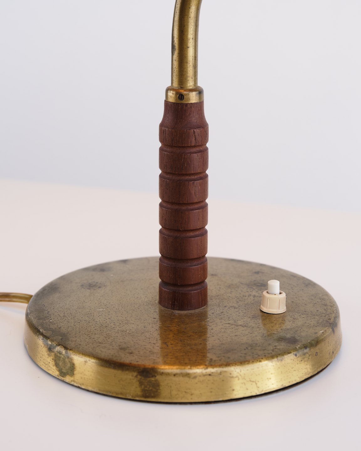 Bordlampe med svingarm i patineret messing ravfarvet overskærm lyfa fra 1930/40erne