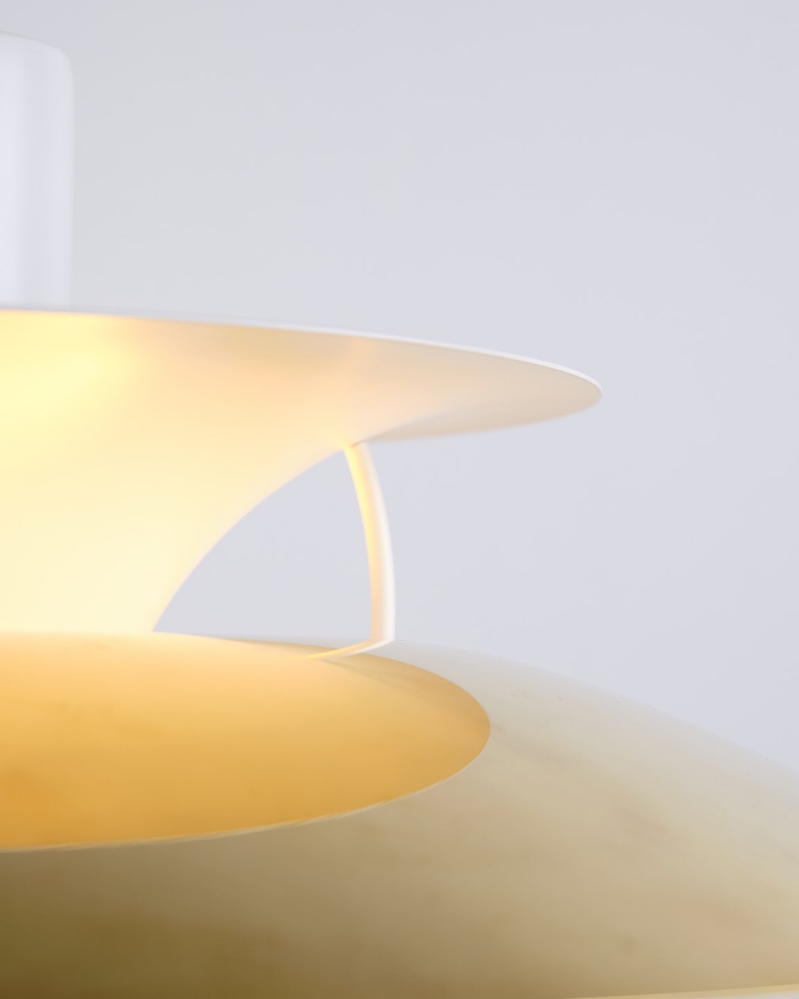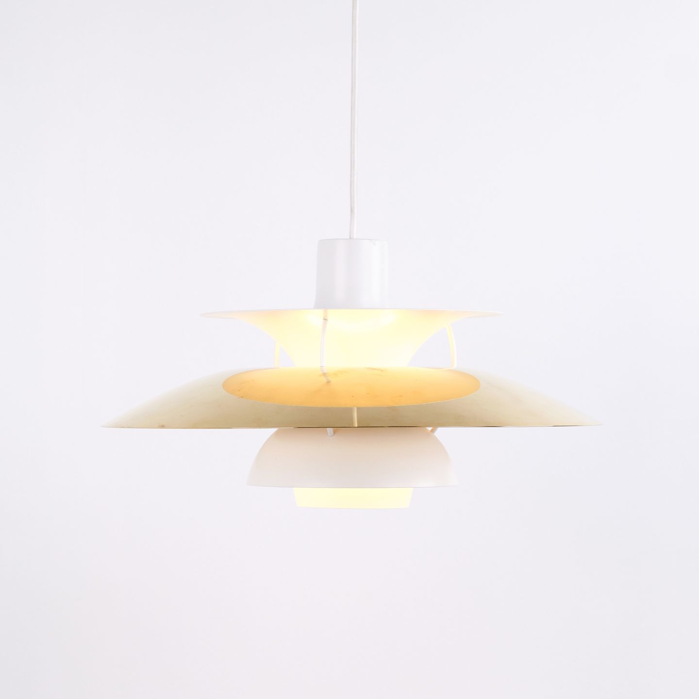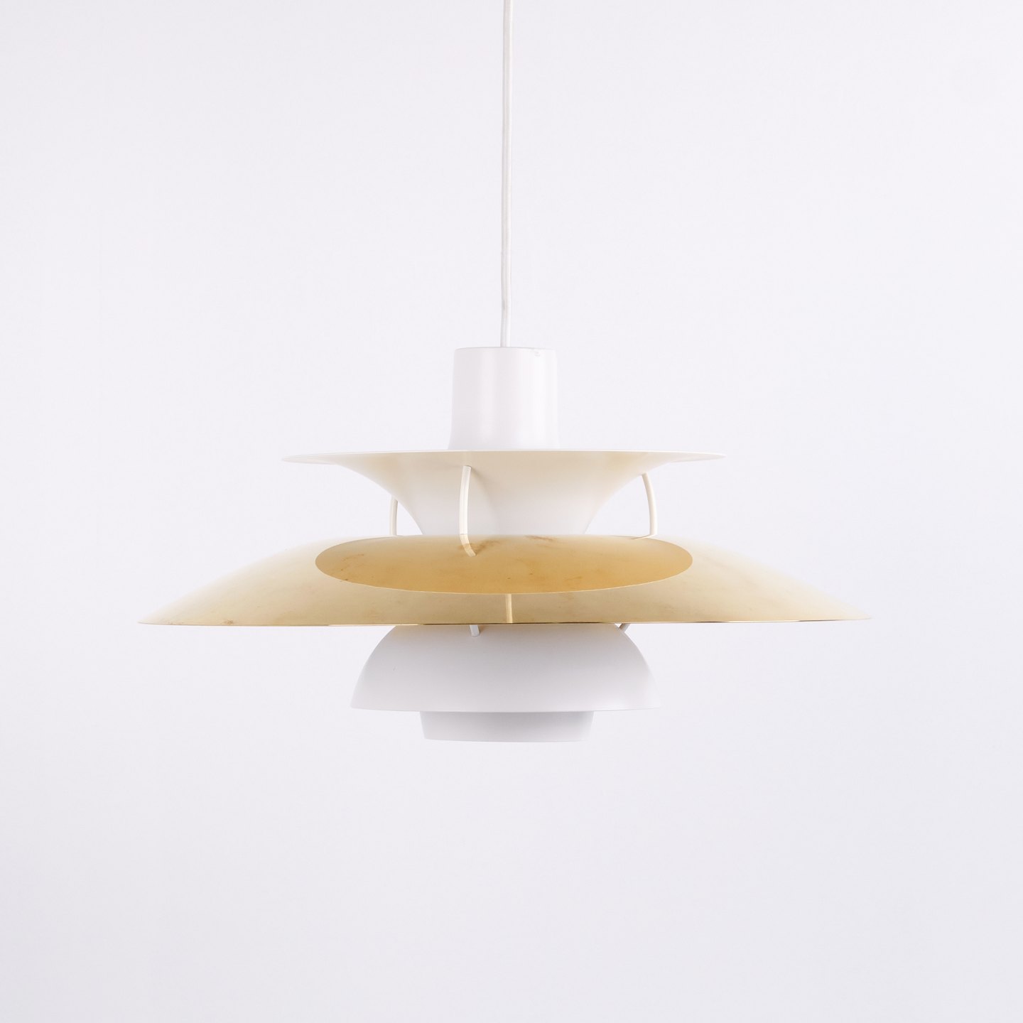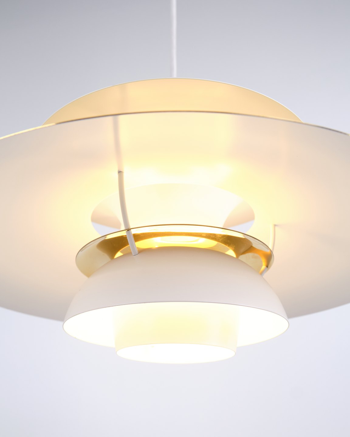 PH 5 pendel i messing fra Louis Poulsen designet af Poul Henningsen. Klassisk dansk lampe med blændfrit og funktionelt lys.