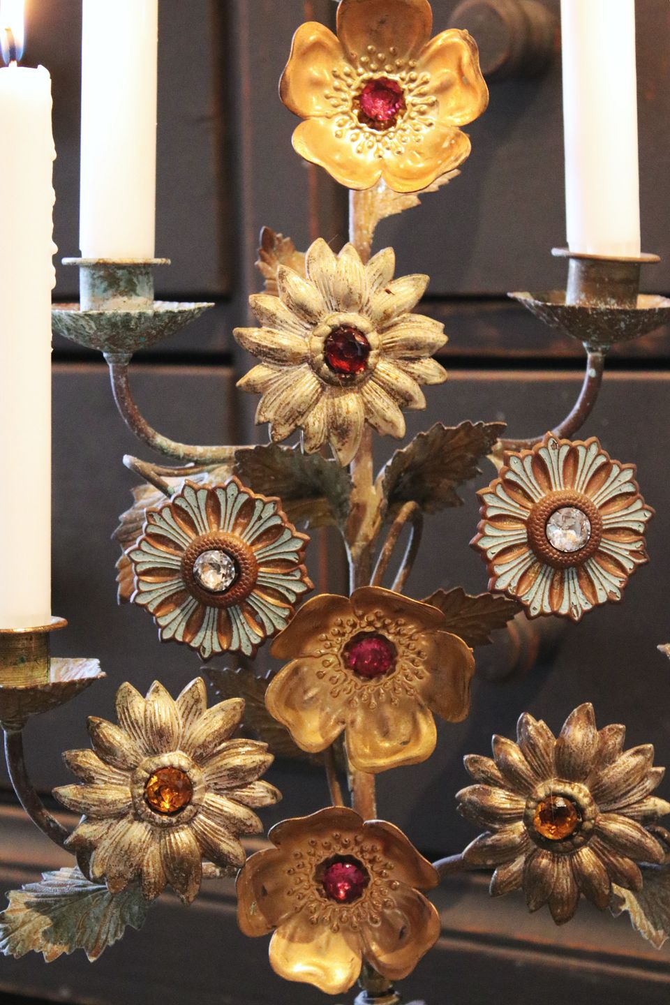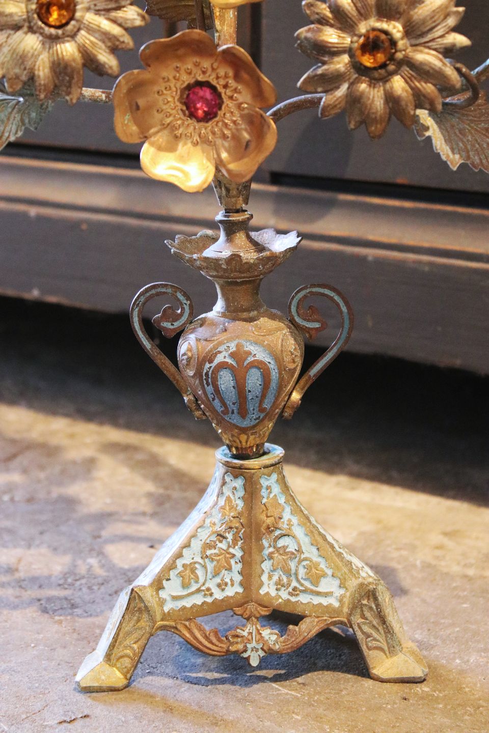 Antik , fransk kirkestage med dekoreret med 8 fine metal blomster med farvet sten...