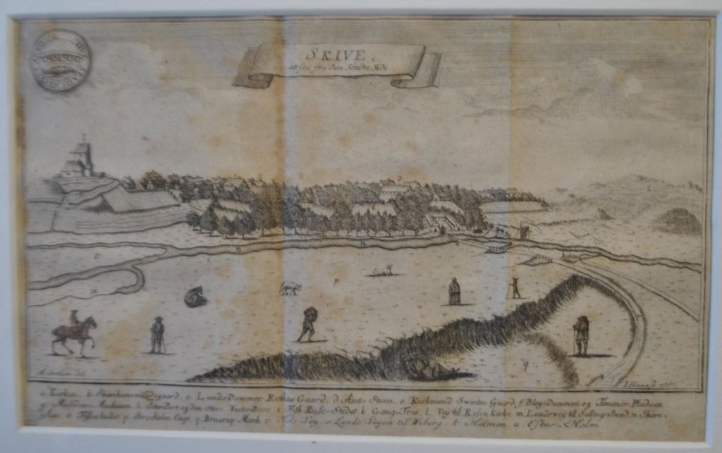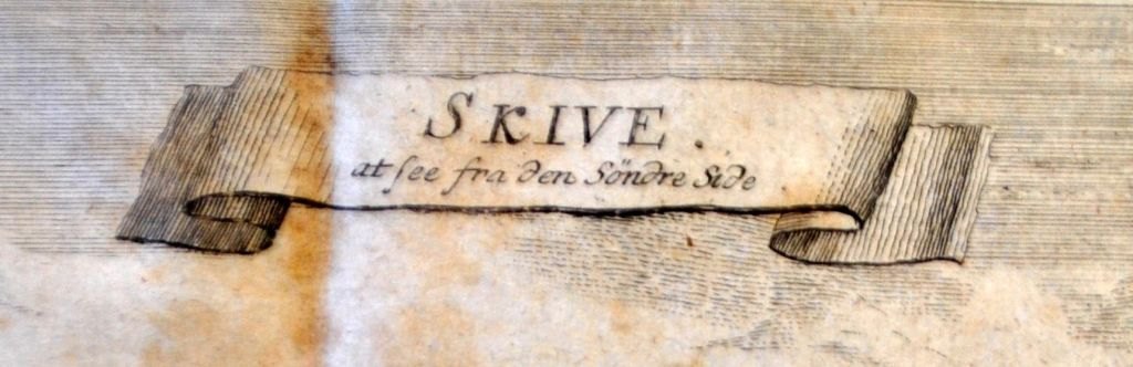 Haas, Jonas (1720 - 1775) Danmark: Skive - at see fra den syndre Side. 1767. Kobberstik. Signeret. 18 x 28 cm.