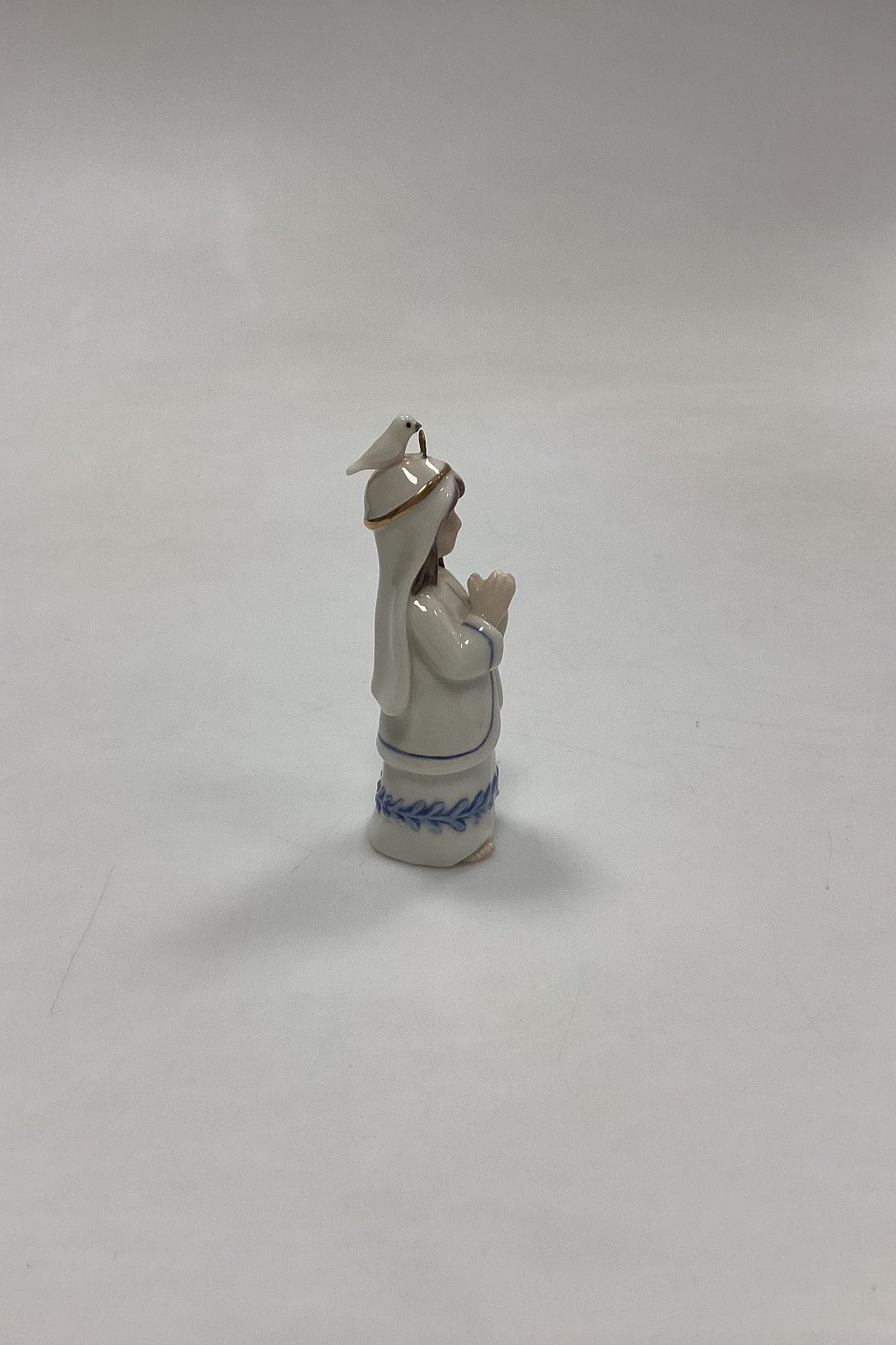 Royal Copenhagen Børnenes Jul 2007 Juleornament - Sara No. 385. Designet af Ingrid Jensen. Pige med fugl. Figur til ophæng.