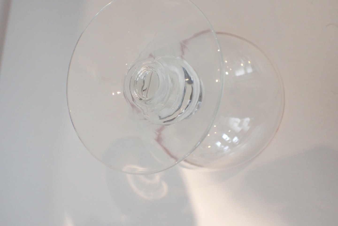 4 emaljemalede glas med rød kant og stiliseret sort hane. Holmegård. Højde: 7,5 cm. Halvkugleformet kumme på lille stilk med rund knap.