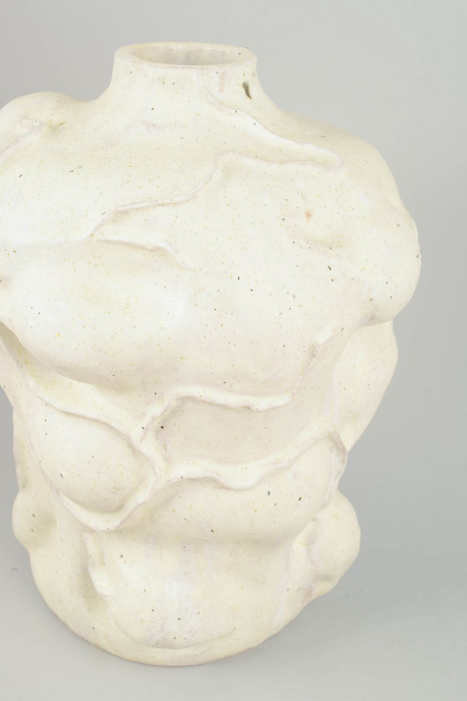 Meget stor unika stentøjsvase, organisk formet med blomstermotiv og dækket af beige, mat glasur.