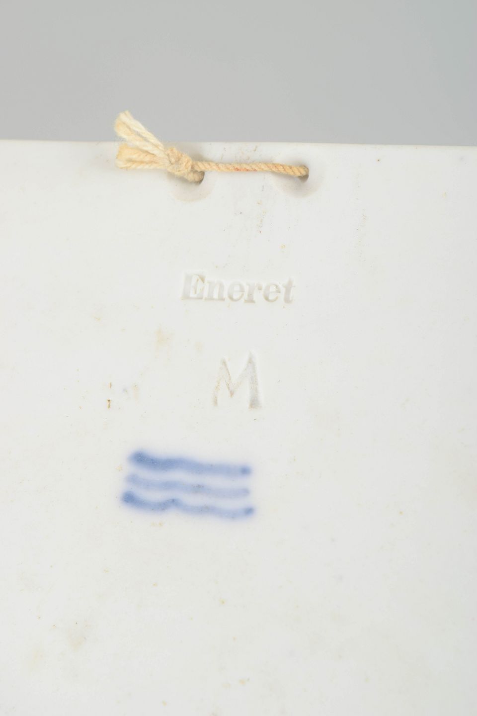 Rektangulært vægrelief i hvidt bisquitporcelæn med klassicistisk motiv af putti og figurkomposition efter Bertel Thorvaldsen, udført med fine detaljer og blød modellering i nyklassicistisk stil.