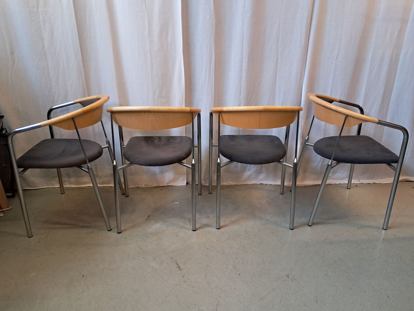 4 Chairman stole af Henrik Tengler i metal med alcantarabetræk, fra 2010erne.