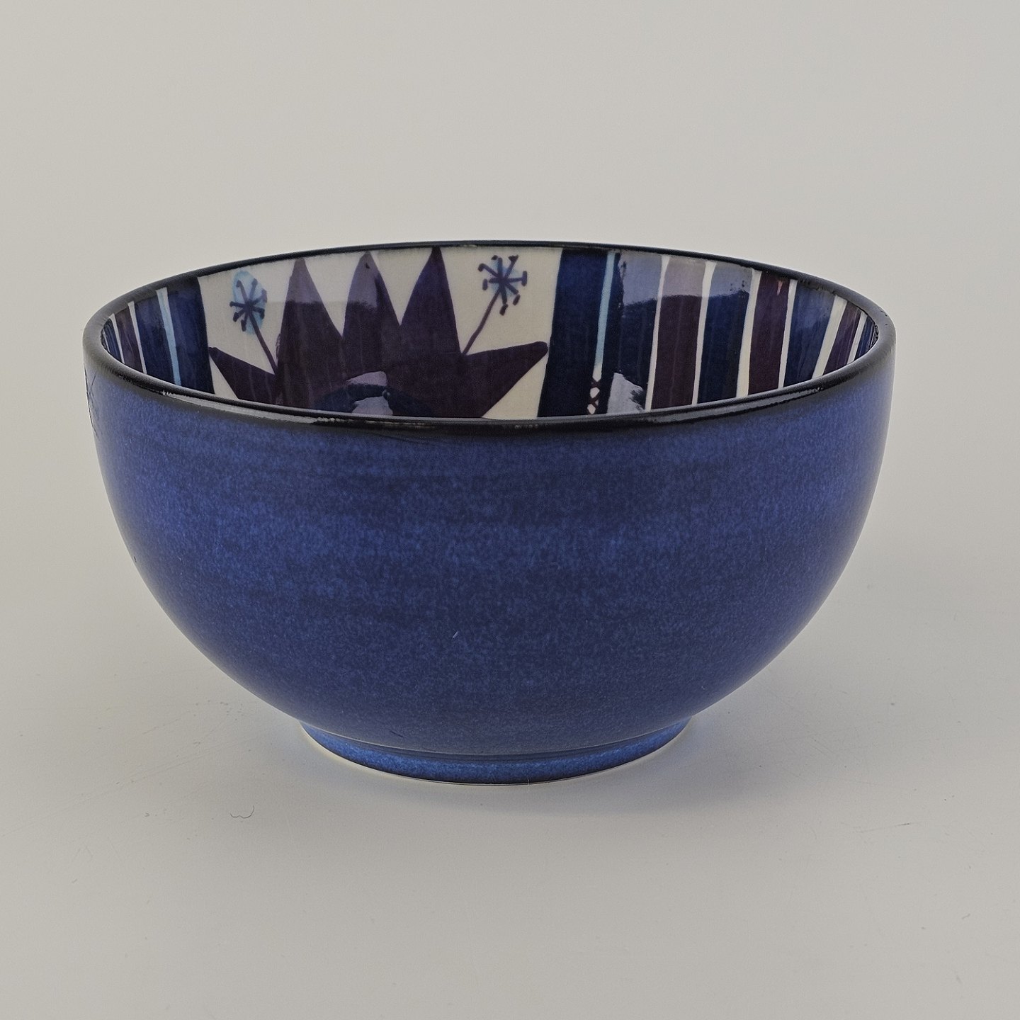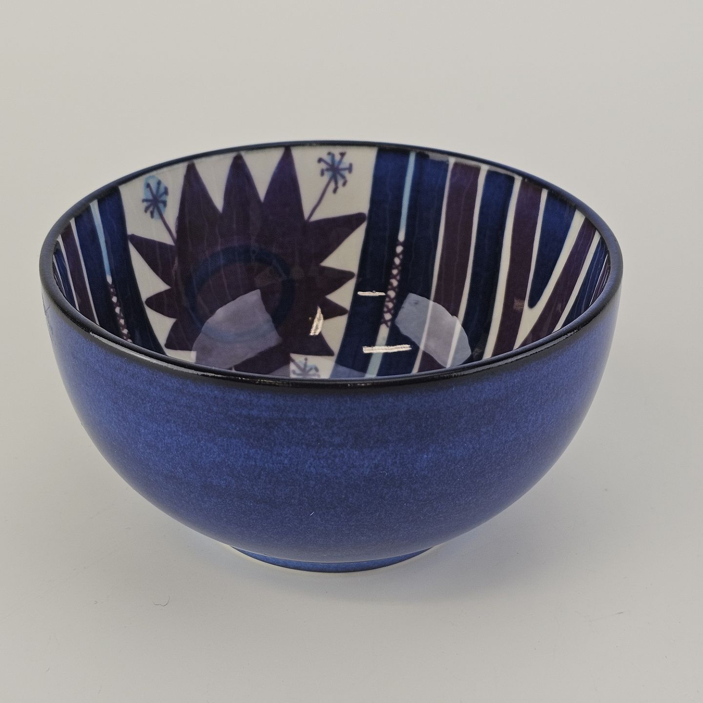 Mørkeblå Tenera skål dekoreret indvendigt med blå farver på hvid baggrund