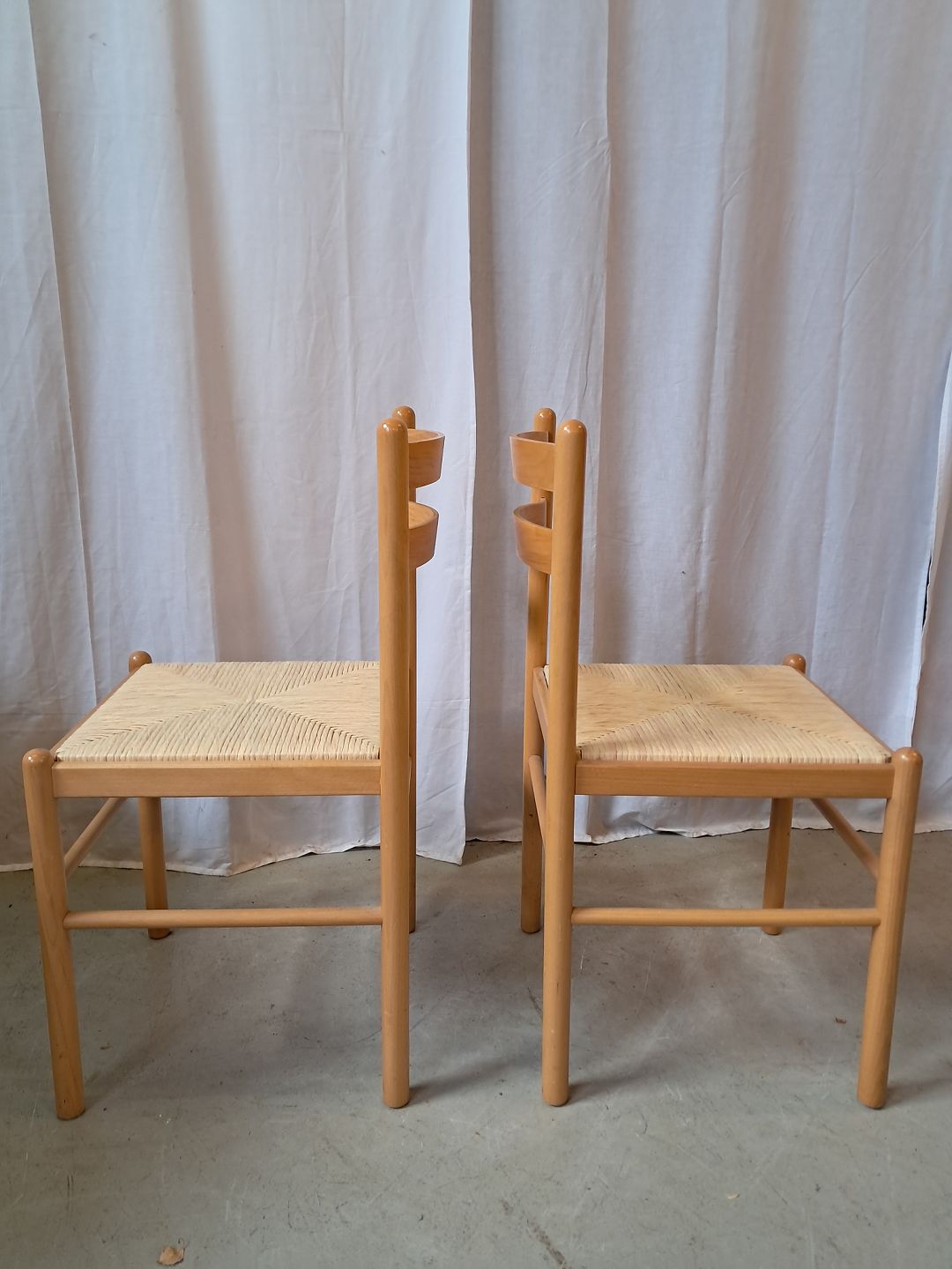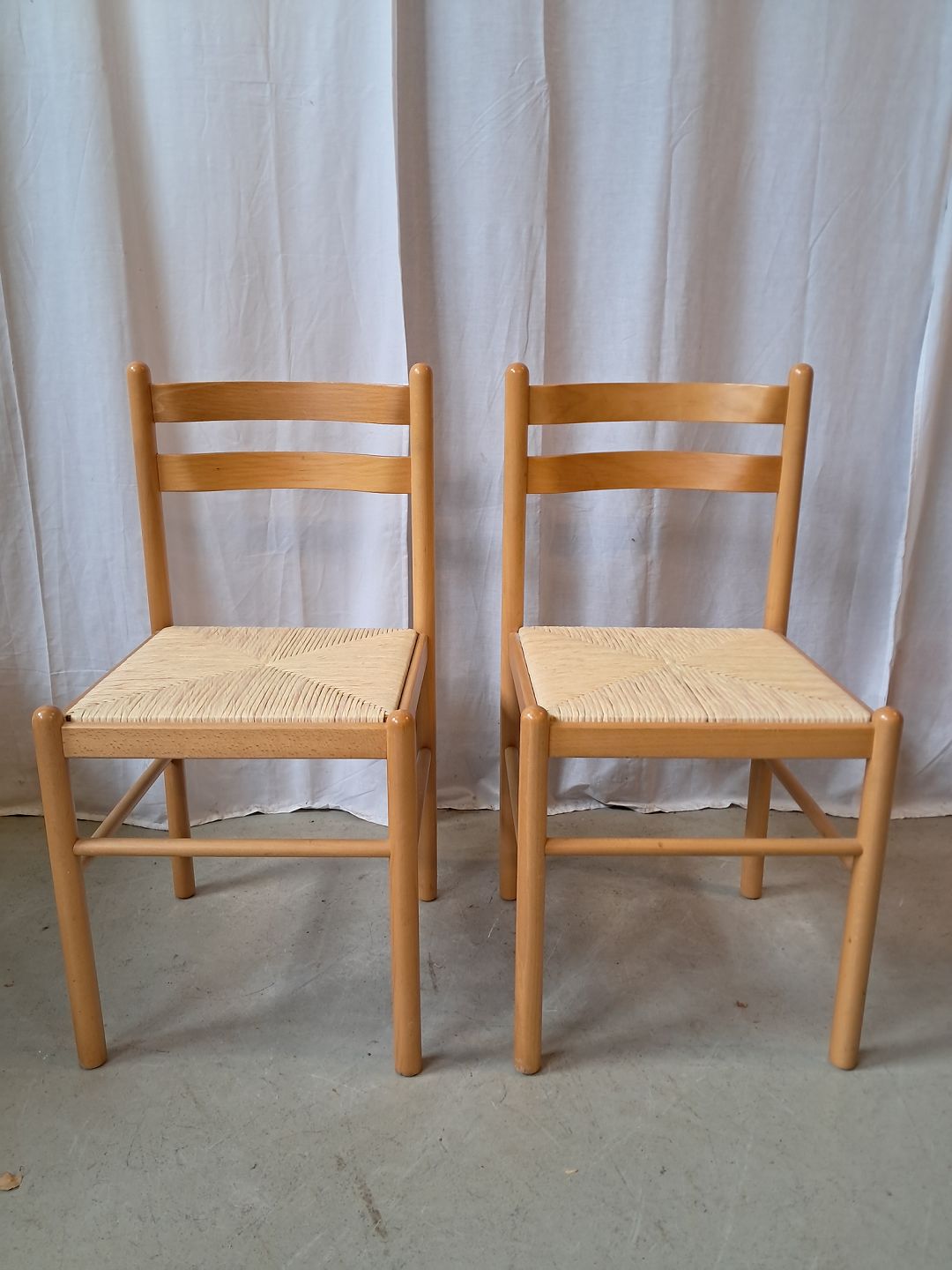 2 Stole i massivt bøgetræ med sæde af sivflet, fra 2000erne.