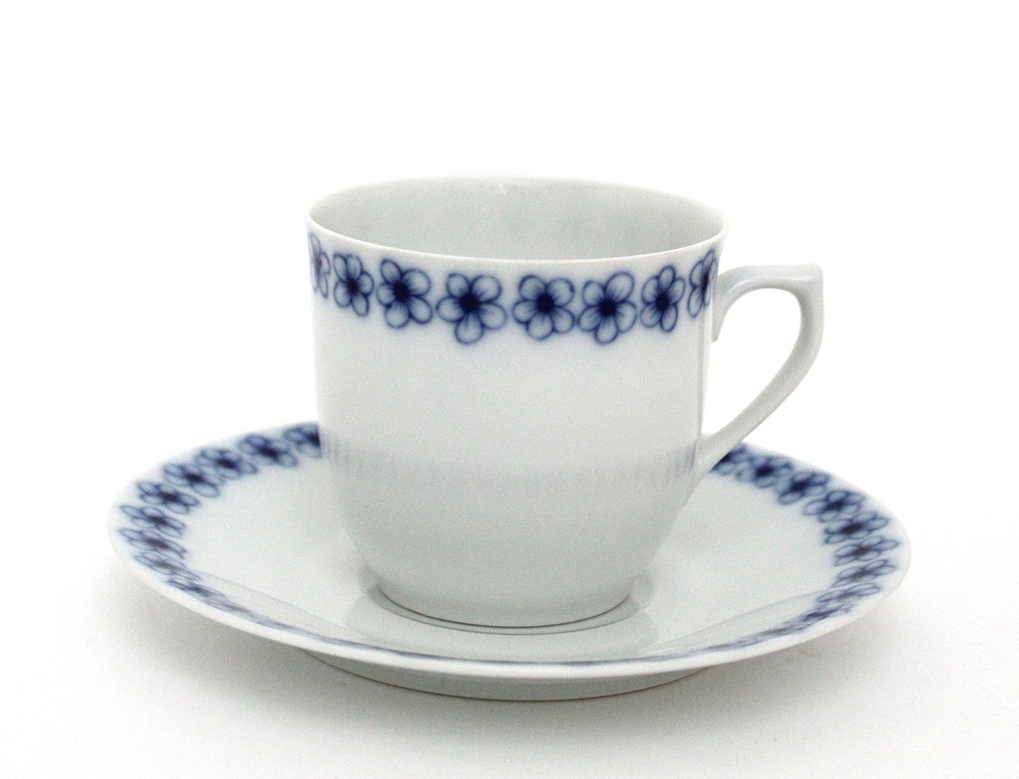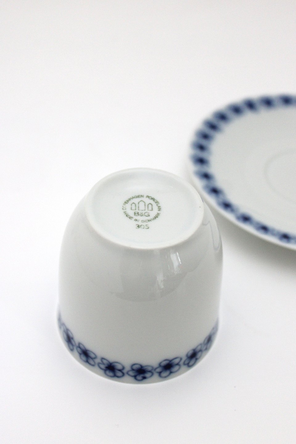 Bing & Grøndahl, Elsa, Hvidt porcelæn med blå blomsterkant. Kaffekop med underkop.