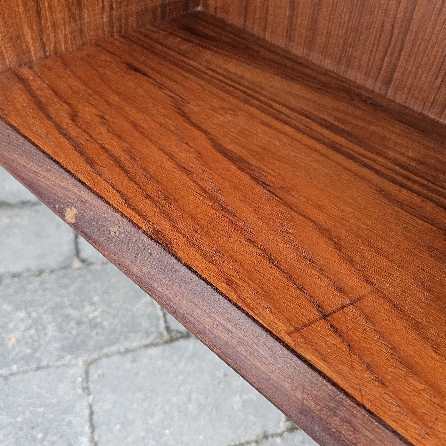 Fremstår med brugsspor i form af mærker på træet flere steder