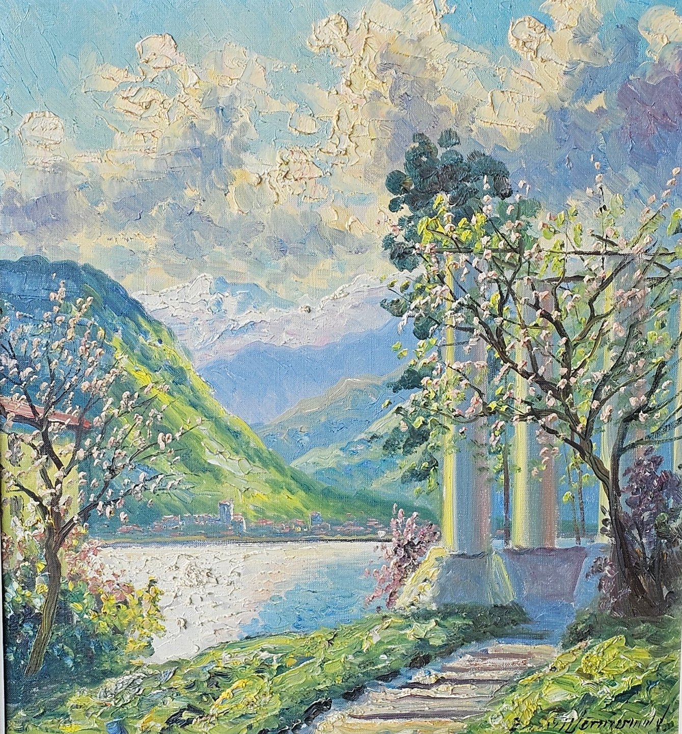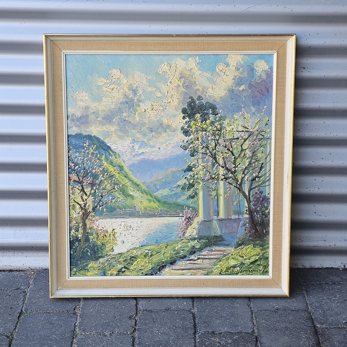 Oliemaleri på lærred monteret i træramme med naturmotiv